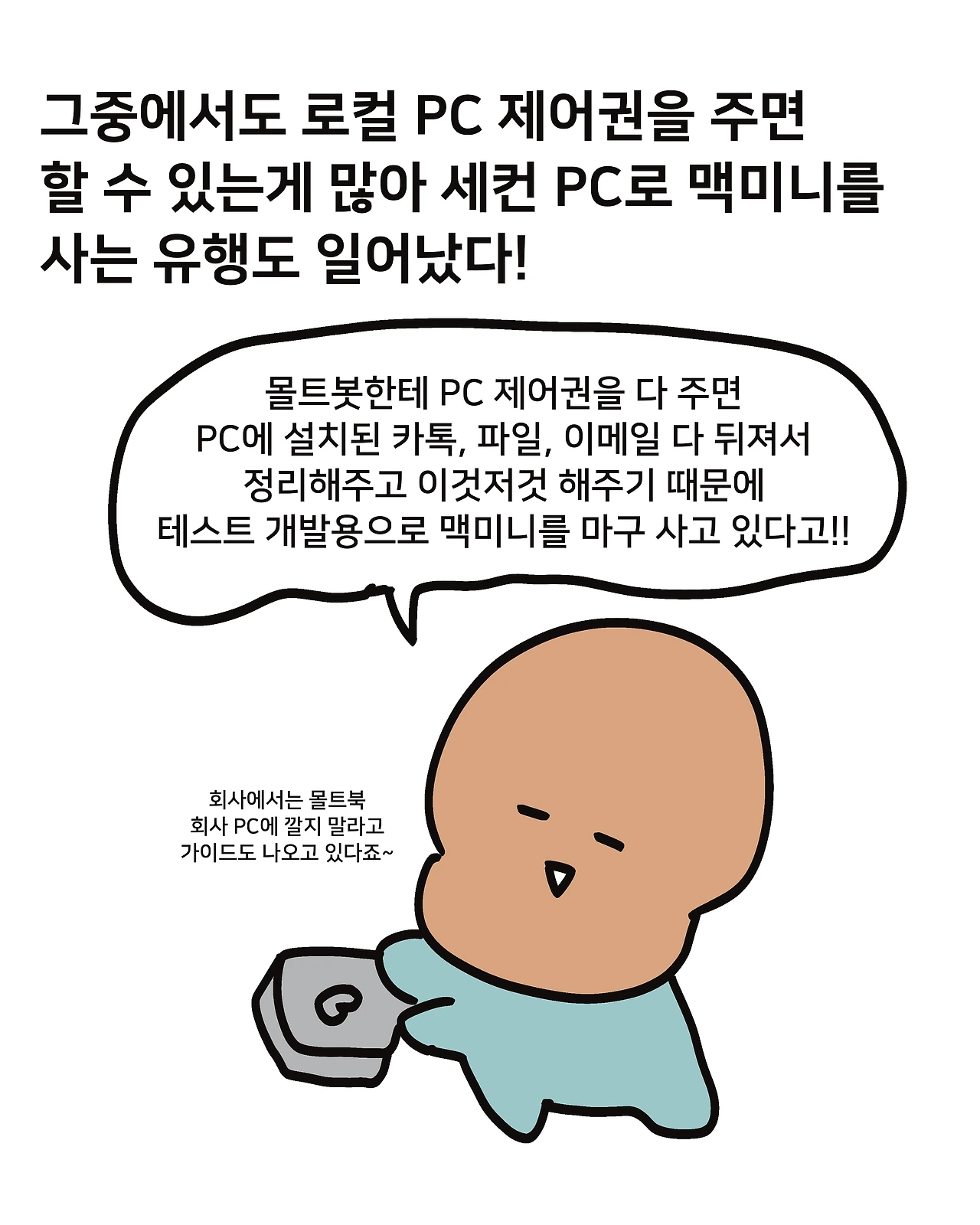 그래서 세컨 PC로 맥미니를 많이 사고 있다고 한다.
