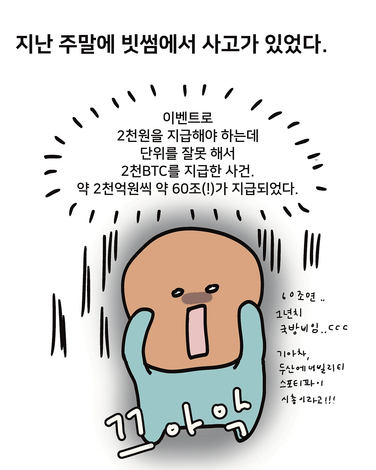 주말에 있었던 빗썸 비트코인 오지급 사건을 간단히 정리해 봤다.
