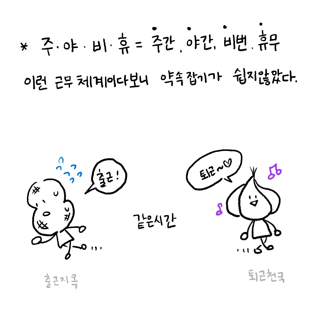 이렇게 스케줄 근무를 하는 마늘이와 만나는 것은 쉽지 않은 일