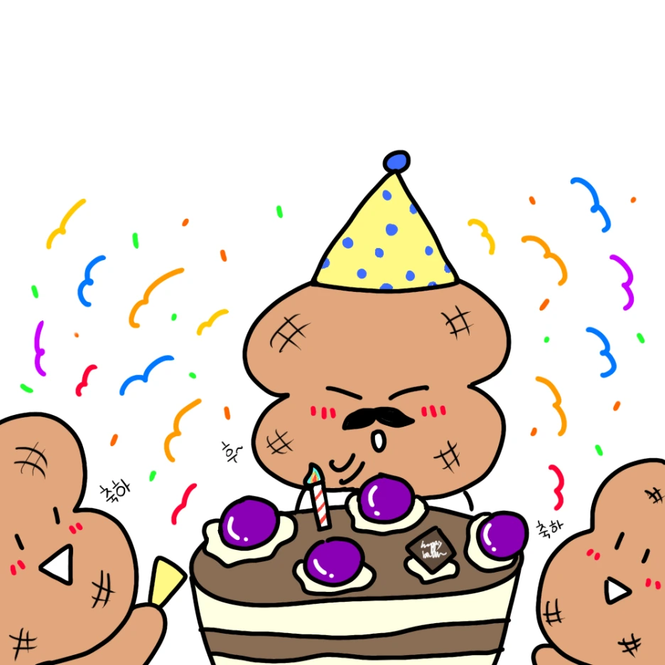 생일케이크에 촛불을 끄고있는 아빠의 모습. (실제로 저런 콧수염은 없다)