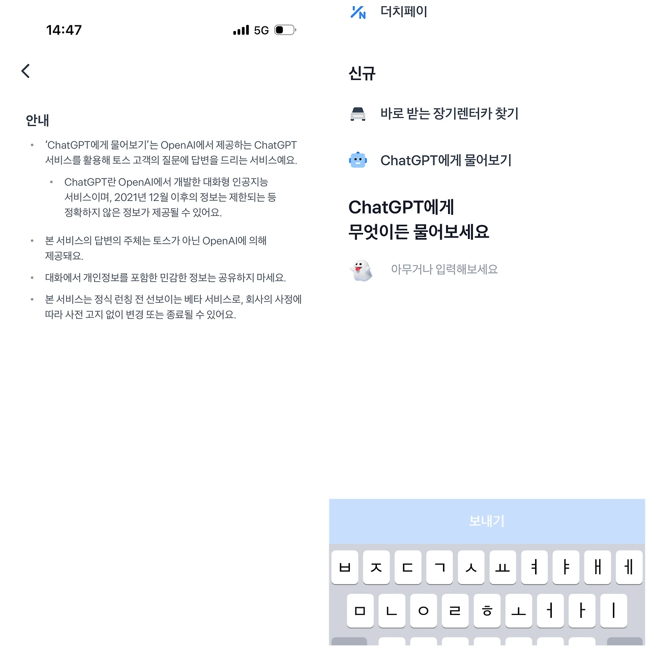 토스, 노션, 마이리얼트립, 너티(이루다 앱)에서 빠르게 챗GPT를 붙였고, 카카오톡 내에 챗GPT api를 활용한 플러스 친구가 여러 개 만들어지기도 한 것 같다(개인이 붙인 것 같고 사칭? 하는 채널도 많은 듯).