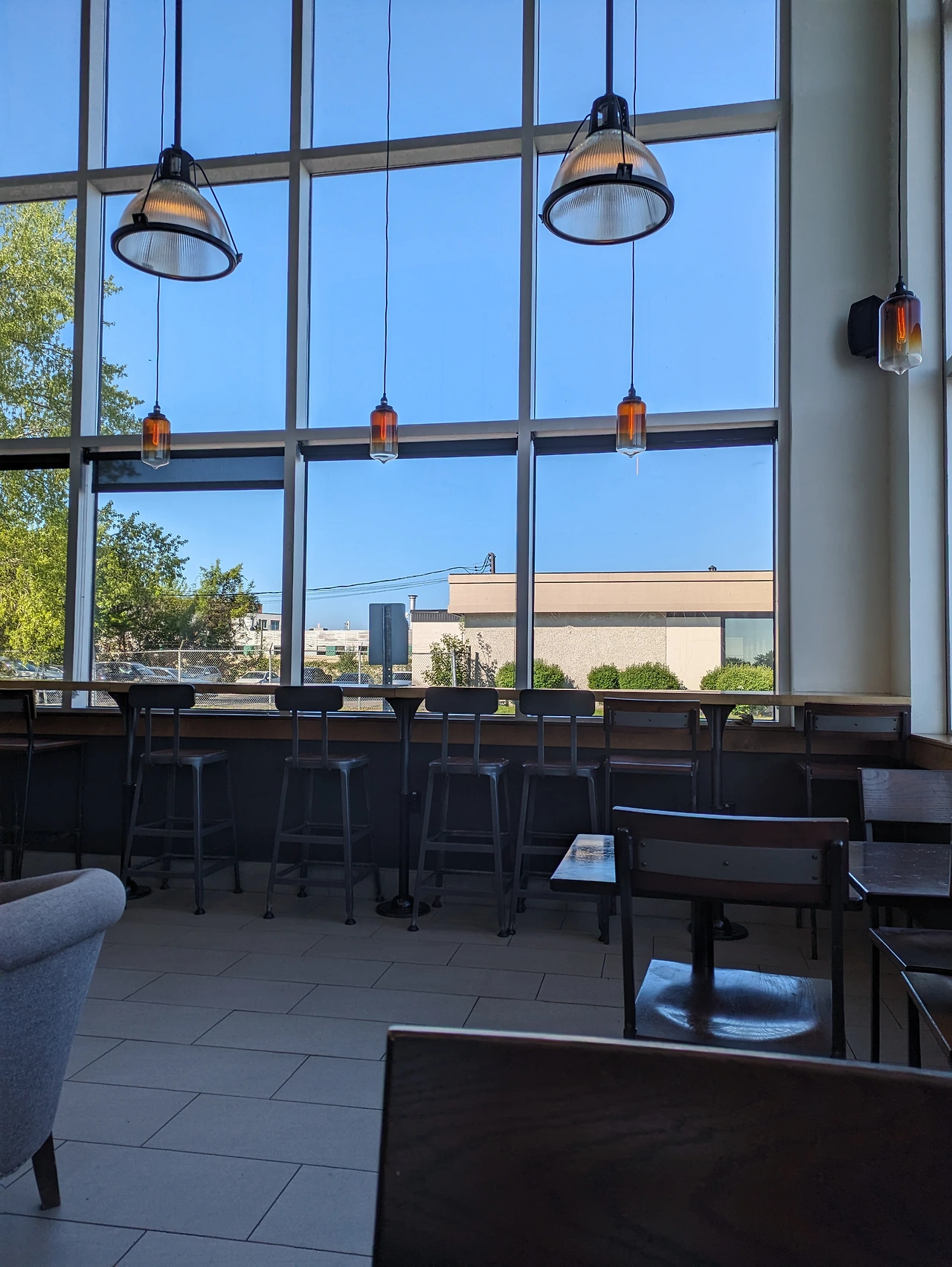 아무도 없는 커피집의 창가에 앉아 밖을 바라봅니다. 이제 좀 시간이 지났다고 길에 차들도 제법 보이기 시작하네요. 하늘에는 갈매기가 날아갑니다.