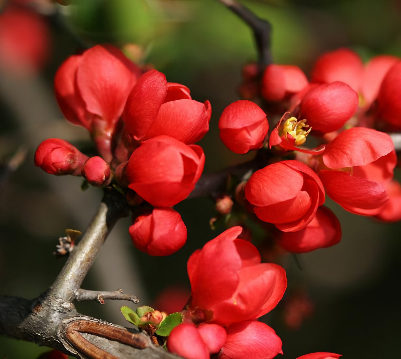 동백꽃과 비슷한 듯하지만 동백꽃처럼 크고 화려하진 않습니다. 오밀조밀 모여서 그렇게 꽃을 피우는 명자꽃입니다.