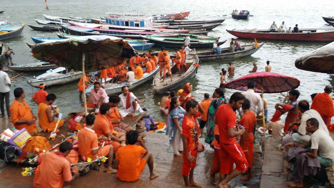 [그림 2] 2014년 7월. 시바의 달에 시바의 도시인 바라나시로 순례를 온 순례자들의 행렬 (필자의 촬영)어쨌거나, 일반론의 입장에서 본다면, 인도의 대표적인 3 신 중, 다른 두 신들과 비교해 볼 때, 시바의 이미지는 죽음, 파괴, 고행, 요가... 등과 더 밀접하게 연관되어 있는 것이 사실이다. 또한, 어찌 본다면 신이면서도 다소는 인간적인.. 혹은 영웅적인? 느낌, 무엇인가 인간의 고통과 도전, 신의 고매함과 힘을 함께 보여주는 느낌이 시바에게는 있다.