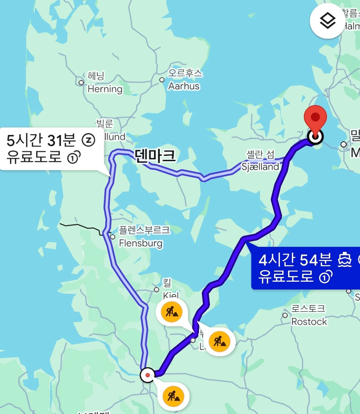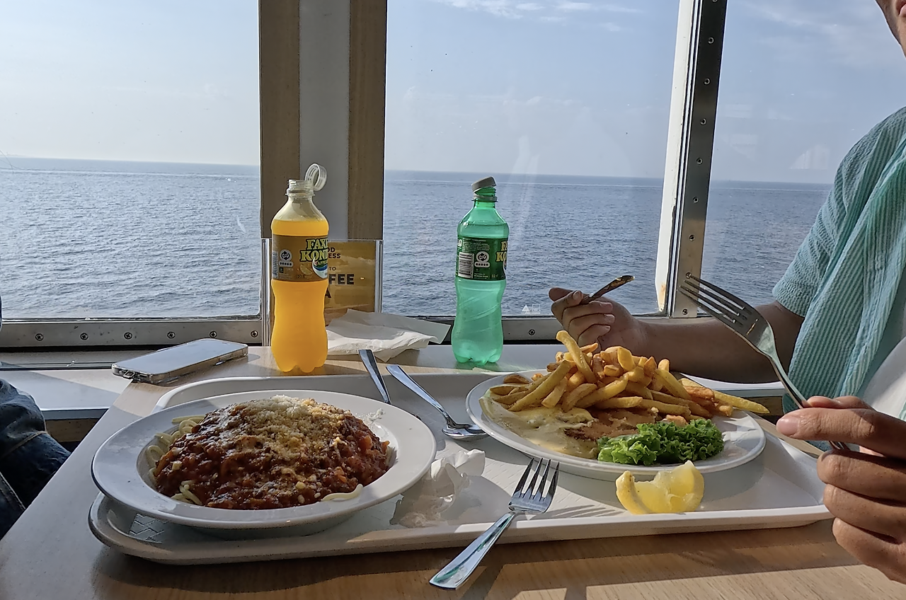 페리 내 레스토랑에서 바다를 바라보며 파스타와 감자튀김으로 간단히 늦은 점심을 먹는 동안 어느새 국경을 넘어 덴마크에 도착했다.