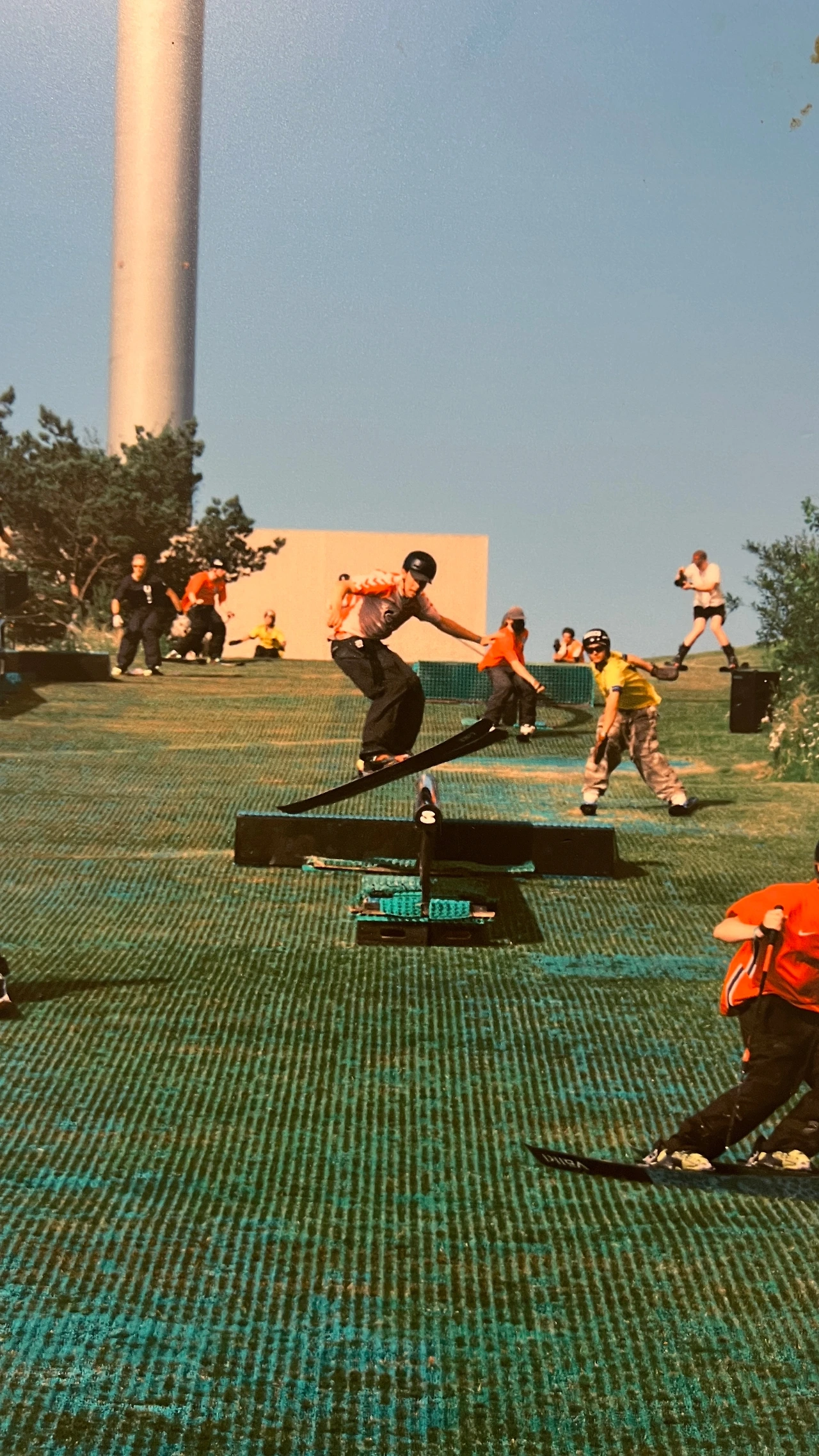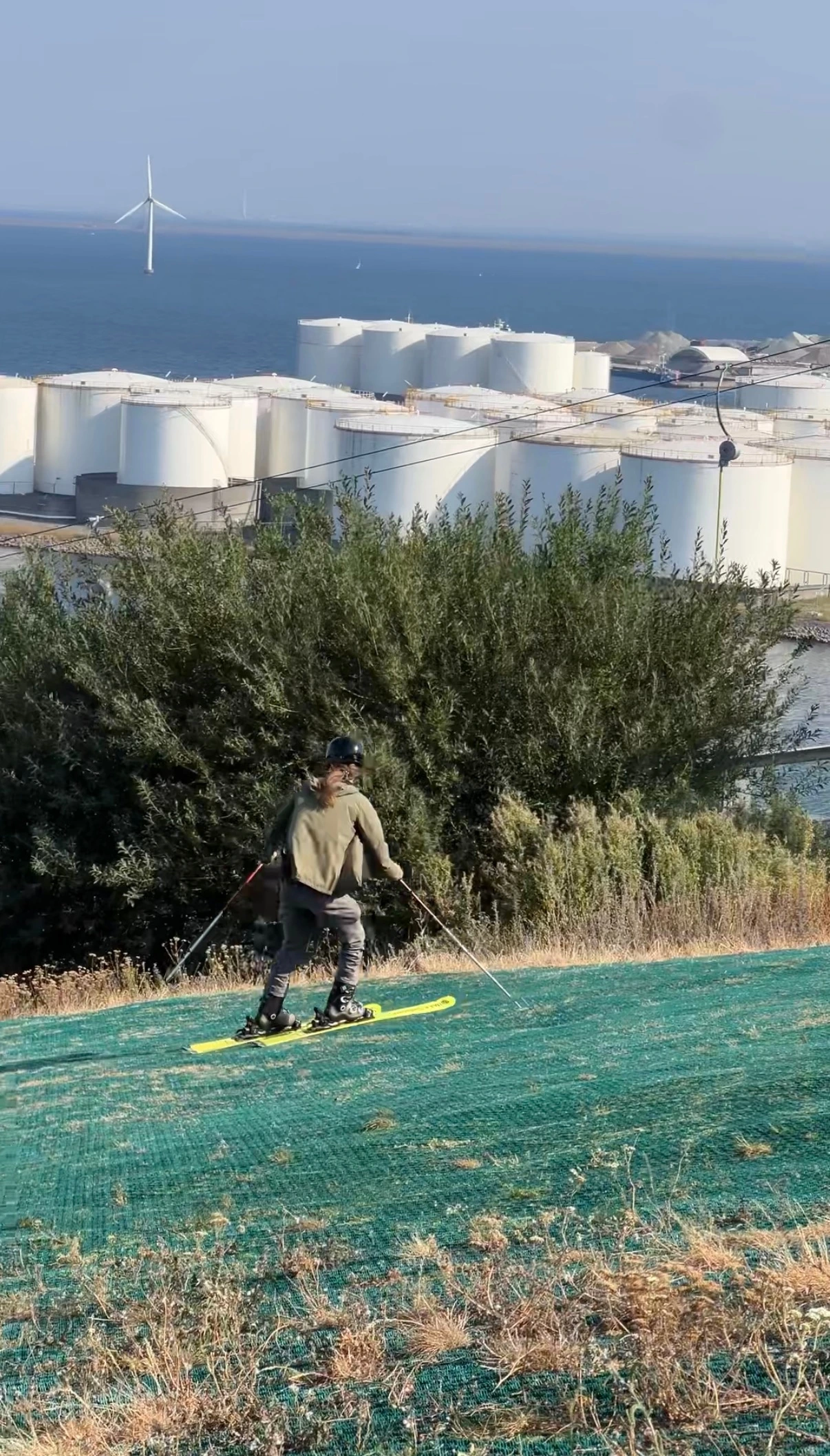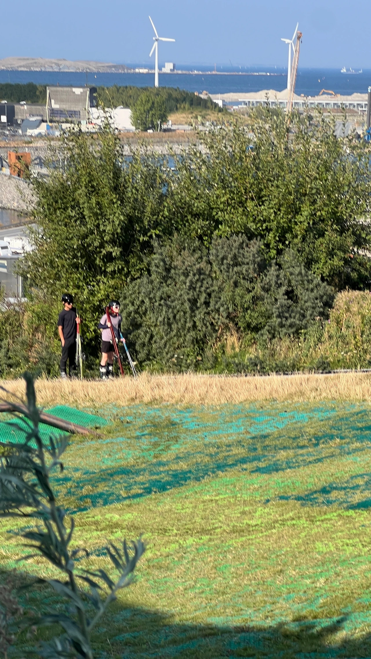 슬로프와 분리되어 있는 산책로로 걸어서 내려가기로 했다. 평일 낮이었는데도 스키 타는 사람들이 생각보다 많이 보였다. 경사로 바닥에 깔린 건 눈이 아니라 플라스틱 인조 스키 매트(Neveplast)인데 그 옆으로 무빙워크가 설치되어 있었다. 매트의 구조상 풀들이 자라고 있었는데 실제로 내려오는 사람들을 보니 크게 문제가 되는 모습은 아니었다.