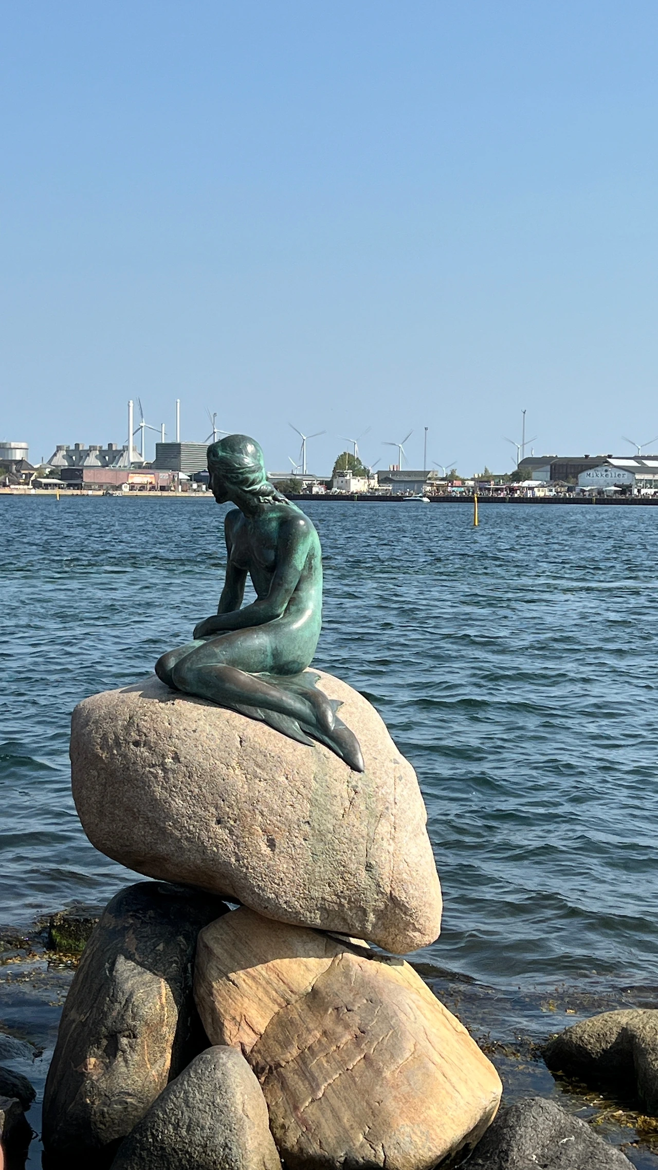 실제로 마주한 인어공주는 사람의 실물크기여서 아담했다. 흥미롭게도 이 조형물은 얼굴과 몸의 모델이 서로 다르다. 1900년대 초에 인어공주 발레공연이 아주 인기 있었는데 당시 주연 무용수를 모델로 작품을 만들고자 했으나 무용수가 누드작업을 거절했다고 한다. 그래서 결국 얼굴은 발레 무대 위의 인물이고, 몸은 조각가의 아내의 몸을 본뜬 동상이 되었다. 의도한 설정은 아니었겠지만, 무대 위의 배우와 현실 속의 아내 모습이 현실과 동화의 경계에 서 있는 인어공주 작품의 설정과 묘하게 겹쳐 보였다.