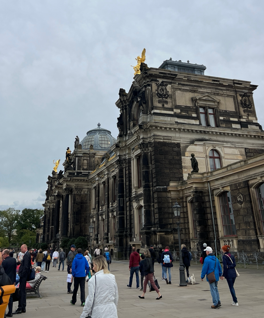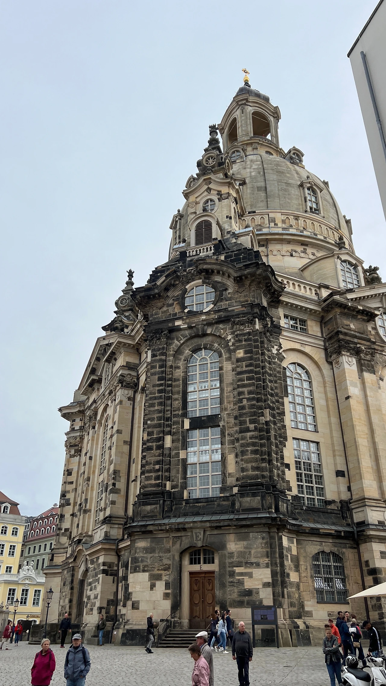 전쟁의 흔적을 완전히 지우지 않고 남겨둔 건물들이 많았다. 드레스덴 구시가지 노이마르크트 광장에 위치한 프라우엔키르헤(Frauenkirche Dresden)에는 검게 그을린 돌들과 상대적으로 밝은 돌들이 섞여있는 모습을 볼 수 있다. 날이 계속 흐렸는데 뭔가 더 스산한 느낌이 많이 들었다.