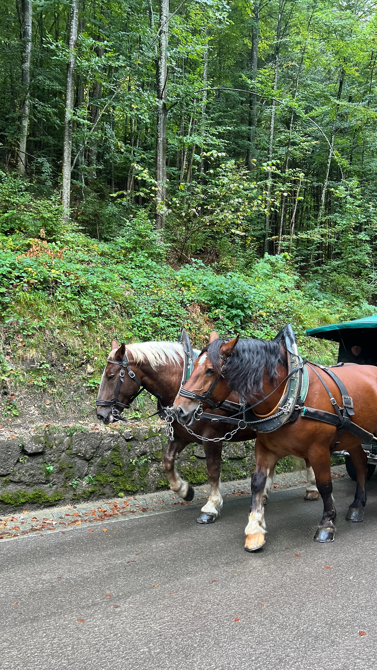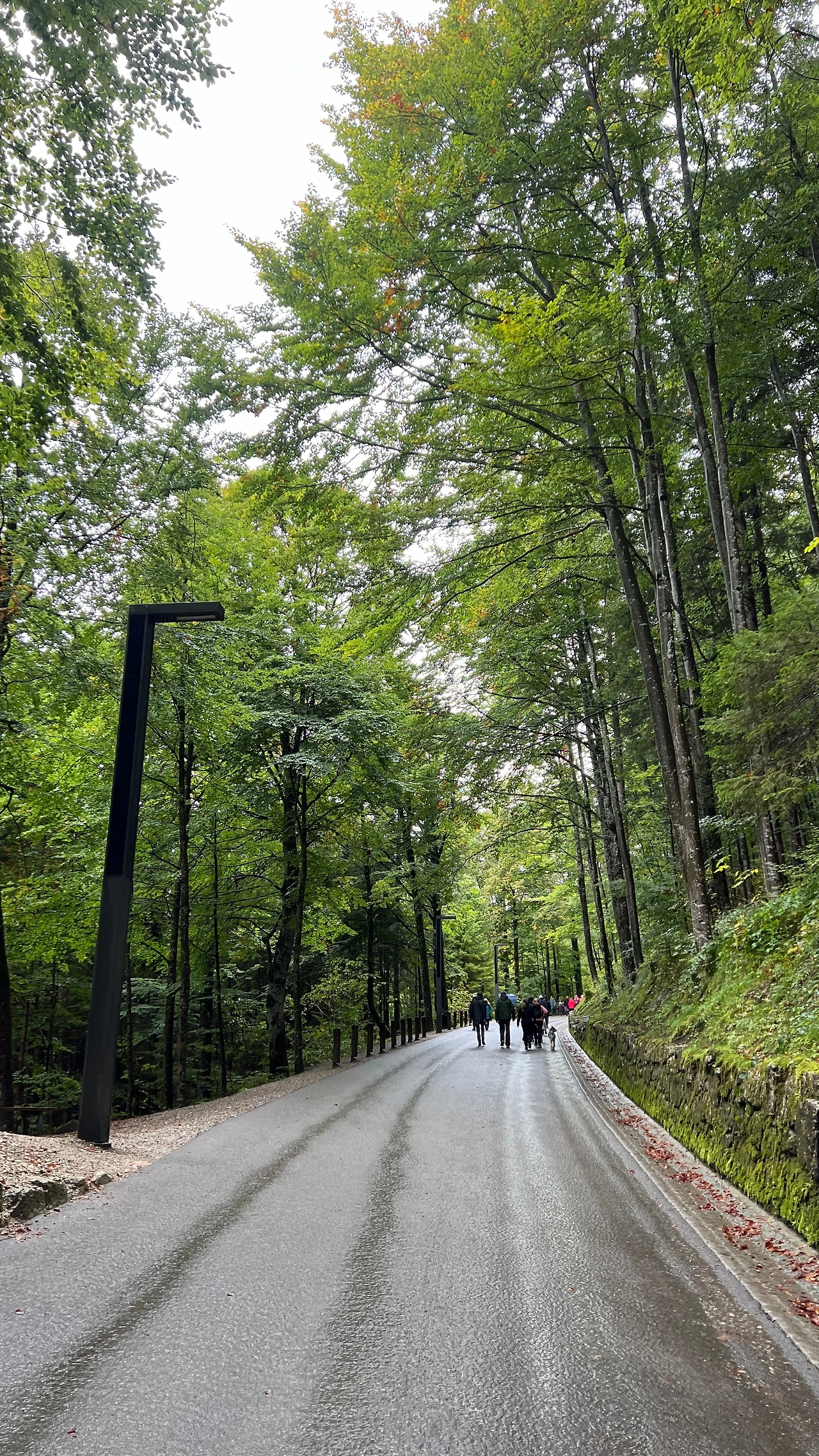 유명한 관광지답게 주차장도 엄청 넓었다. 산 중턱에 위치한 성을 보러 가기 위해서는 도보로 걸어 올라가거나 버스나 말을 타고 올라가는 방법이 있다. 덥지도 않았고 비가 살짝 내려서 숲의 피톤치드향이 많이 나는 거 같아서 걸어 올라가기로 했다. 경사가 심한 건 아니었지만 꾸준히 사십 분 정도를 올라가야 해서 조금 힘이 들었다.