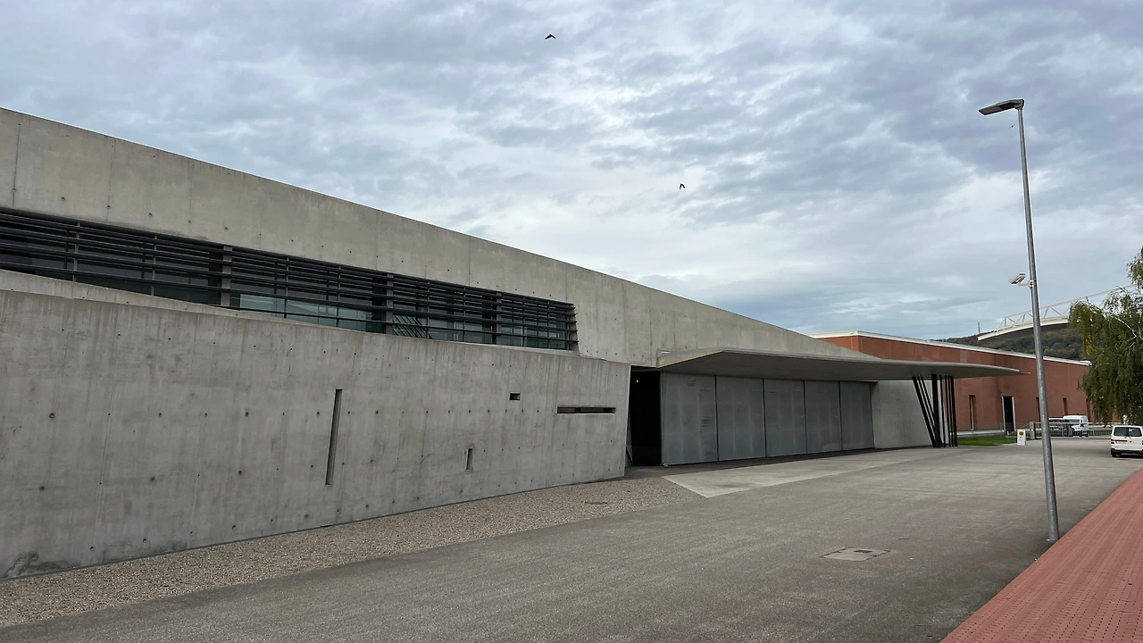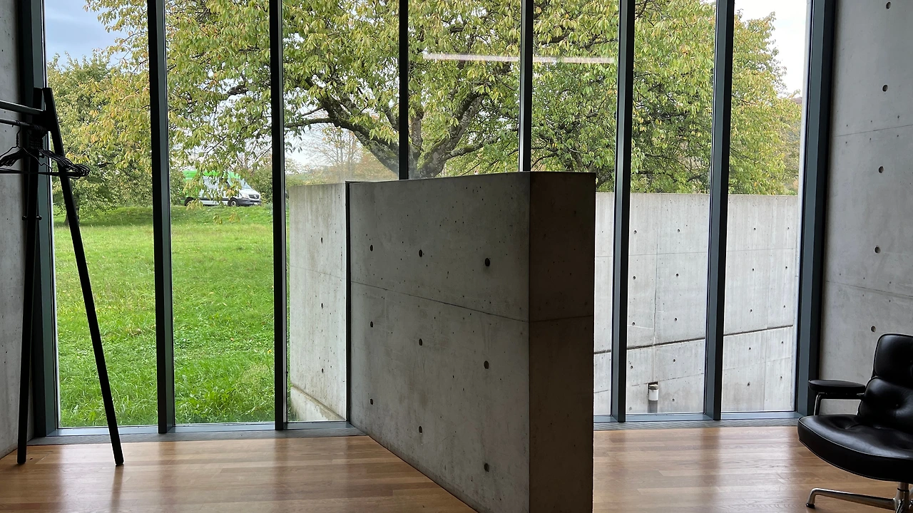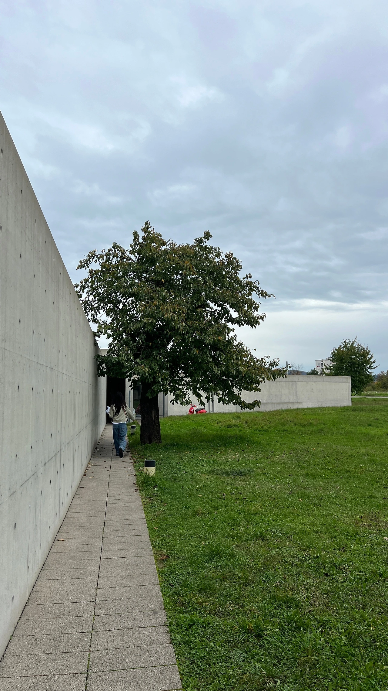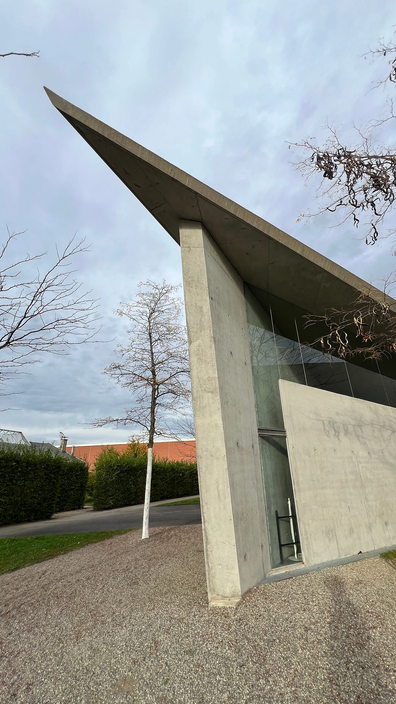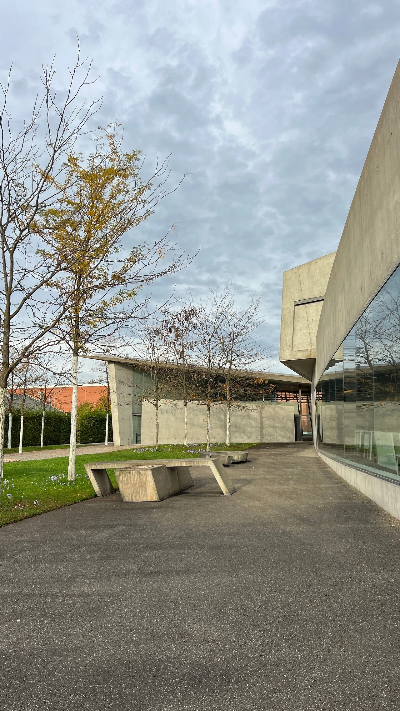 강원도 원주에 있는 뮤지엄산과 제주도의 본태박물관을 설계한 안도 다다오의 첫 유럽 건축 프로젝트다. 프랭크 개리가 설계한 건물 바로 옆에 위치하고 있었다. 멀리서 봐도 안도다다오 건축의 가장 큰 특징인 노출 콘크리트 벽이 눈에 띄었다. 명확한 직선, 빛과 그림자의 대비가 특징이며, 경사 지형 위에 배치되어 자연 풍경과 유기적으로 조화를 이루고 있는 것이 특징이다.