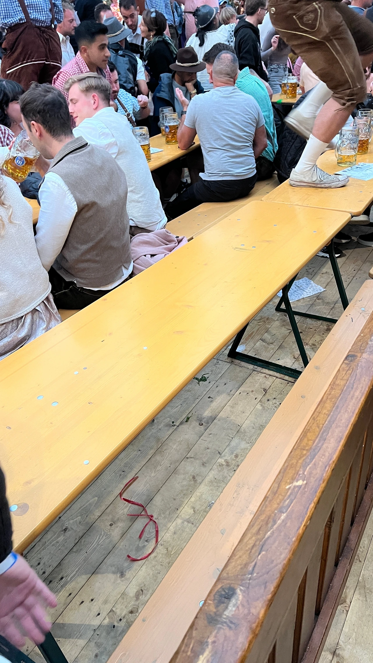 텐트 안의 긴 테이블은 대부분 모르는 사람들끼리 자연스럽게 합석하는 구조였는데, 옆자리에 앉은 사람들과 몇 마디를 나누다 보면 금세 분위기에 섞이게 된다. 누군가는 노래를 따라 부르고, 누군가는 잔을 부딪치며 건배를 반복한다.