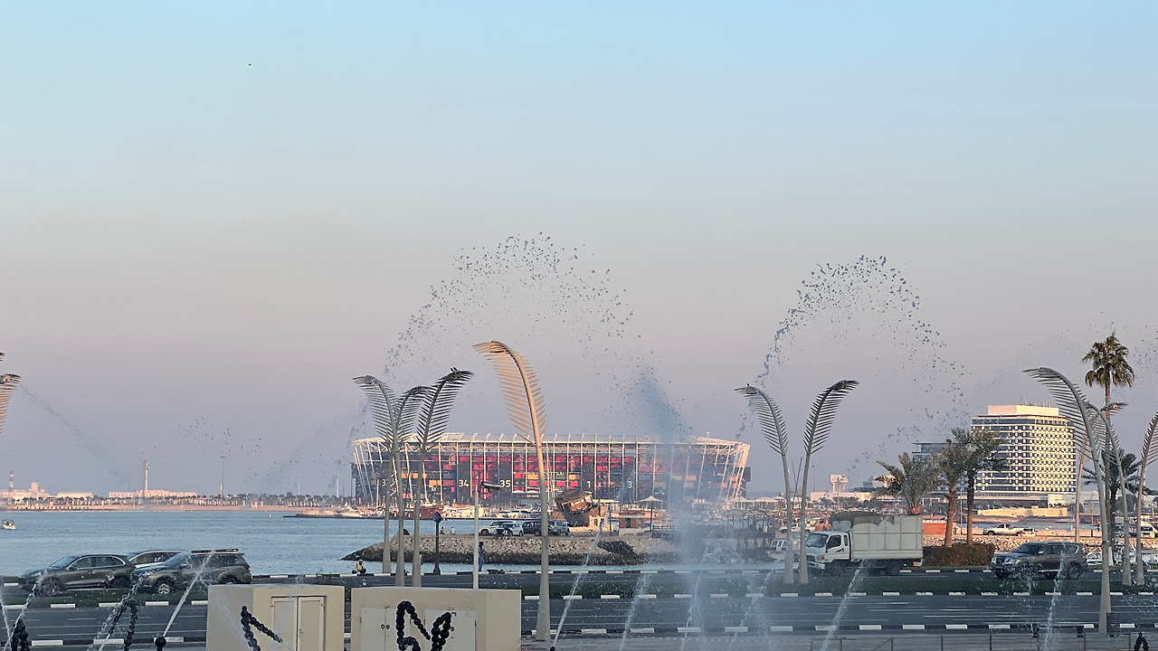 저 멀리 2022년 카타르 월드컵에서 우리나라와 브라질의 16강 경기가 열렸던 스타디움 974도 보인다. 974개의 컨테이너를 쌓아 올려서 만든 경기장인데 월드컵 이후 철거 예정이었으나 아직도 경기장으로 사용되고 있다고 한다.