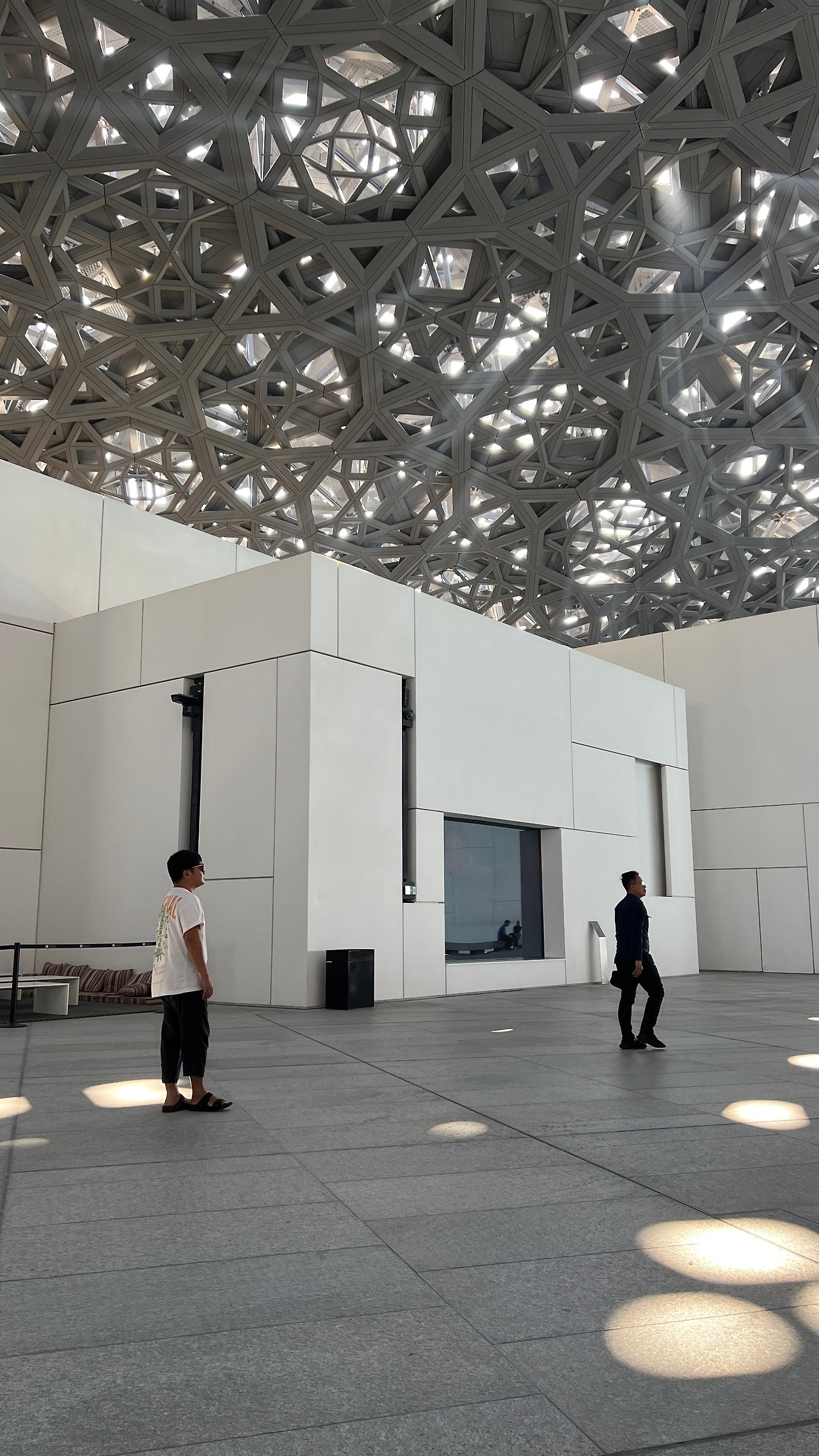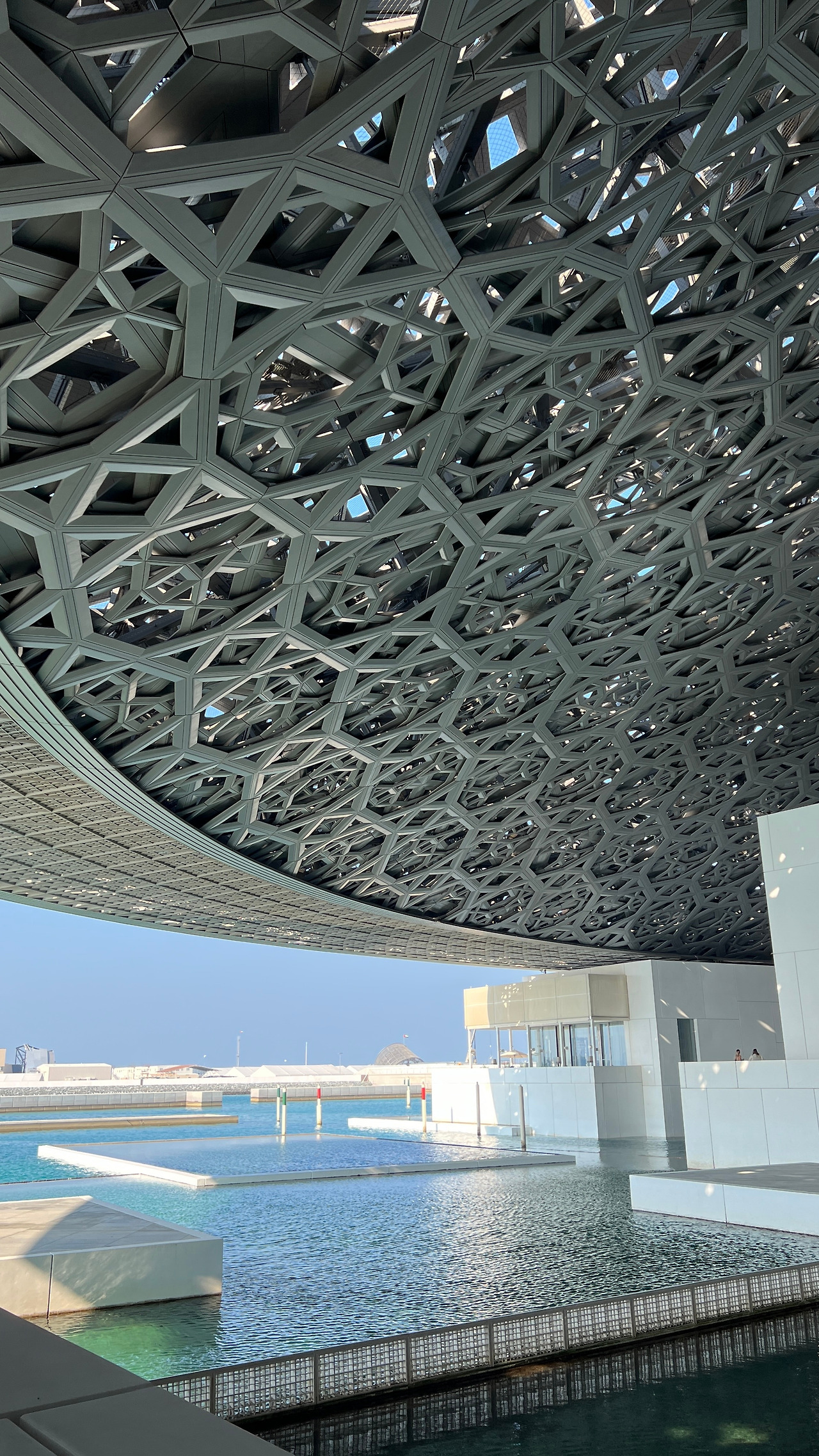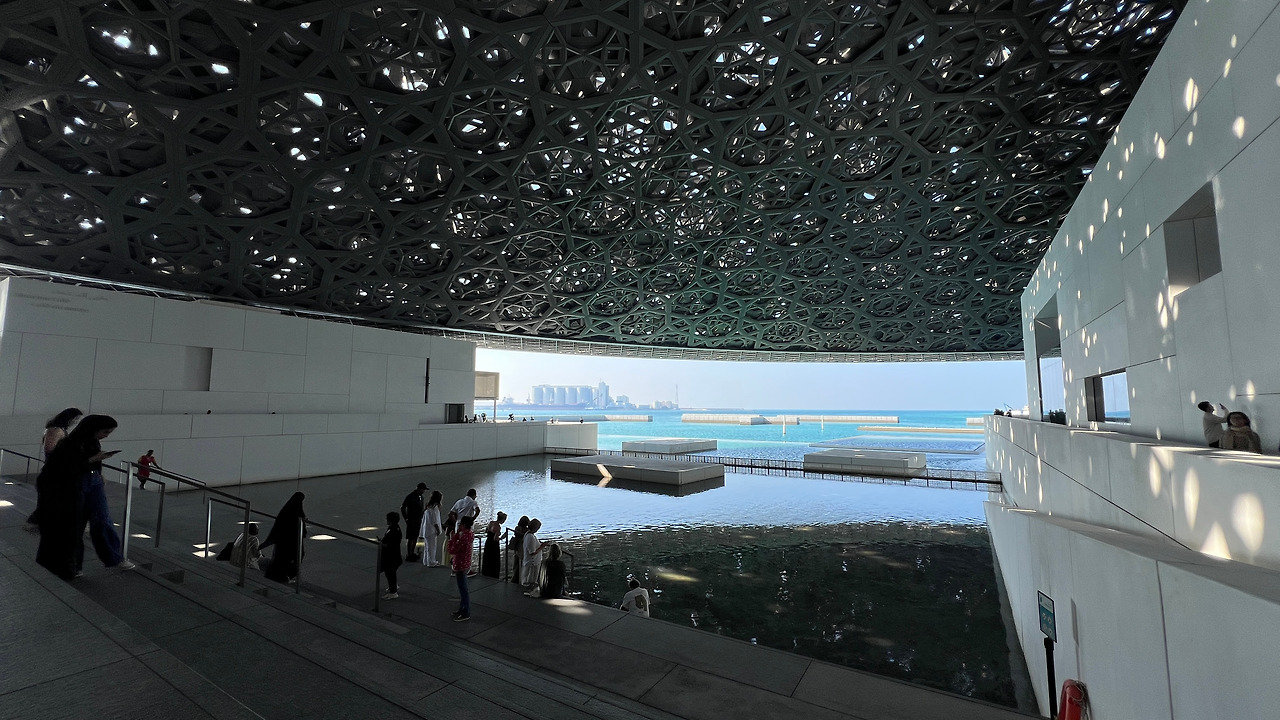 아부다비의 건축물 중에 기장 기대했던 루브르 아부다비에 다녀왔다. 장 누벨 (Jean Nouvel)이라고 하는 세계적으로 유명한 프랑스 건축가이다. 우리나라의 리움미술관의 M2를 설계한 건축가로 작은 메스덩어리(섬)들을 큰 지붕(야자잎)이 덮고 있는 형태이다.
