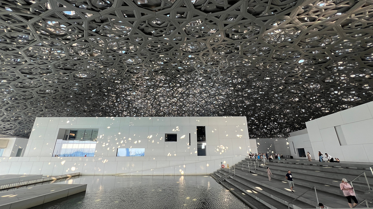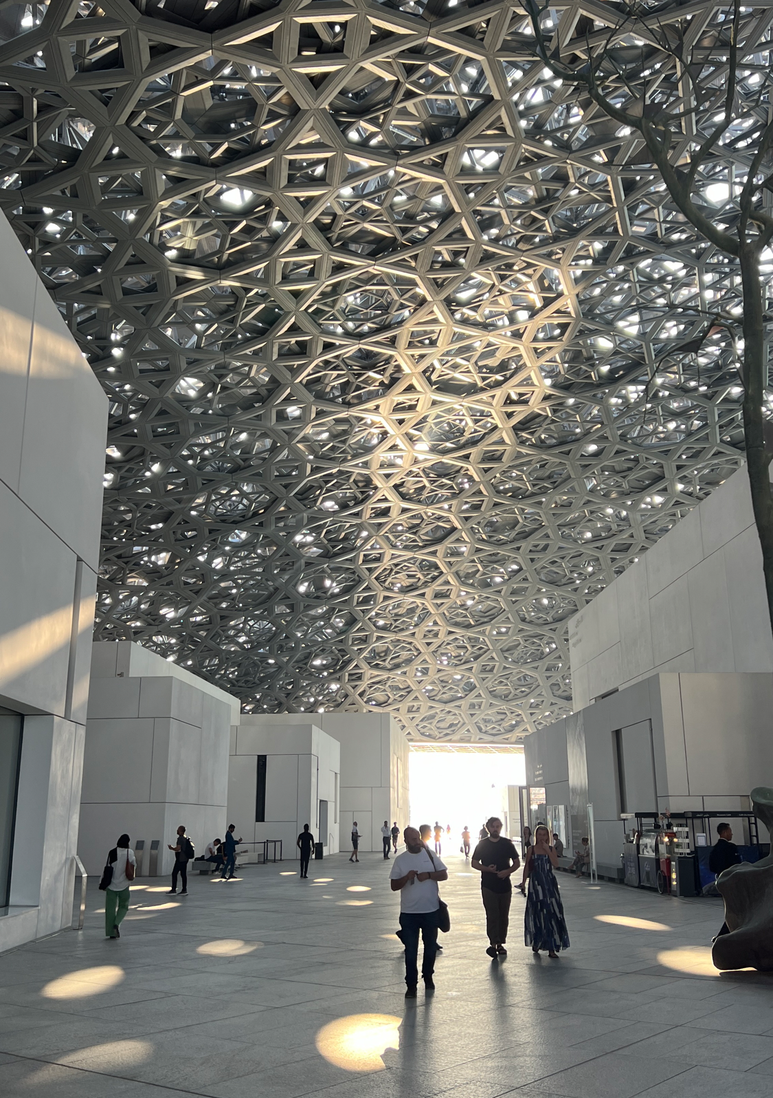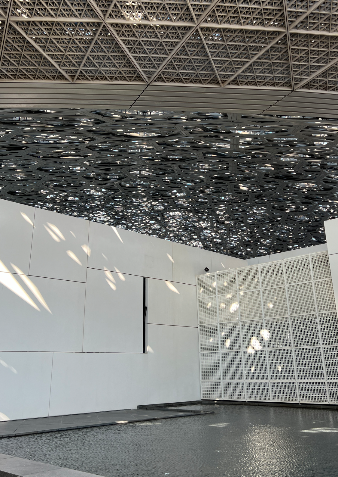 아부다비의 건축물 중에 기장 기대했던 루브르 아부다비에 다녀왔다. 장 누벨 (Jean Nouvel)이라고 하는 세계적으로 유명한 프랑스 건축가이다. 우리나라의 리움미술관의 M2를 설계한 건축가로 작은 메스덩어리(섬)들을 큰 지붕(야자잎)이 덮고 있는 형태이다.