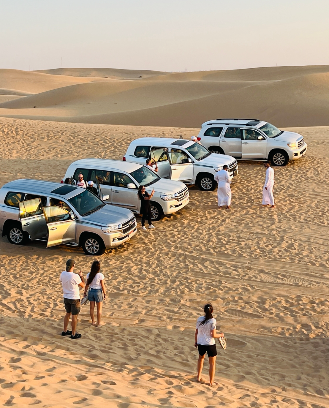 두바이에서 한 시간 반 정도 거리인 아부다비의 첫 일정은 사막투어였다. 세계여행하며 했던 사막투어 중에 가장 스릴 넘쳤던 라이딩이었다. 운 좋게 줄지어 가는 차들 중 1번 차량에 타게 되었는데 모래언덕을 롤러코스터처럼 질주하면서 느꼈던 스릴은 잊지못할 짜릿함이었다.