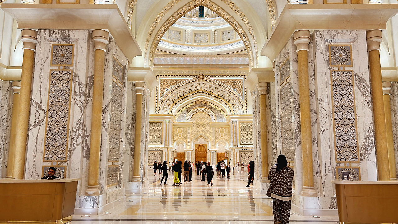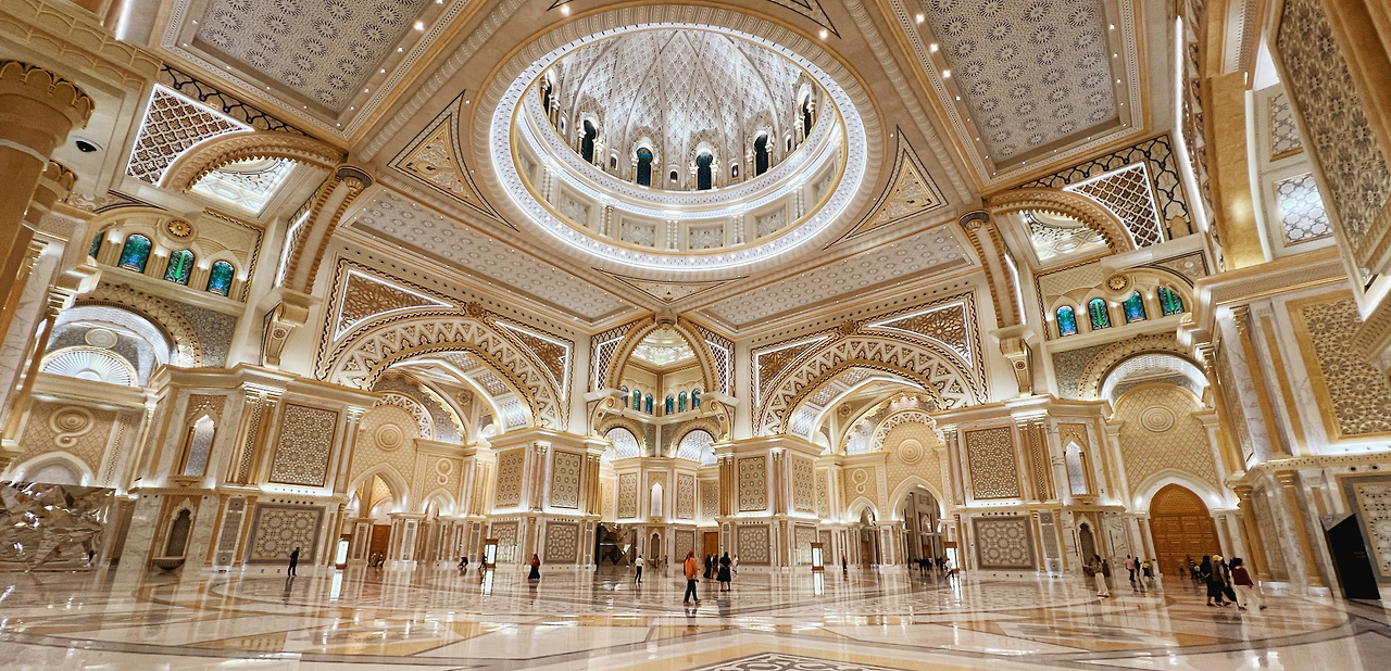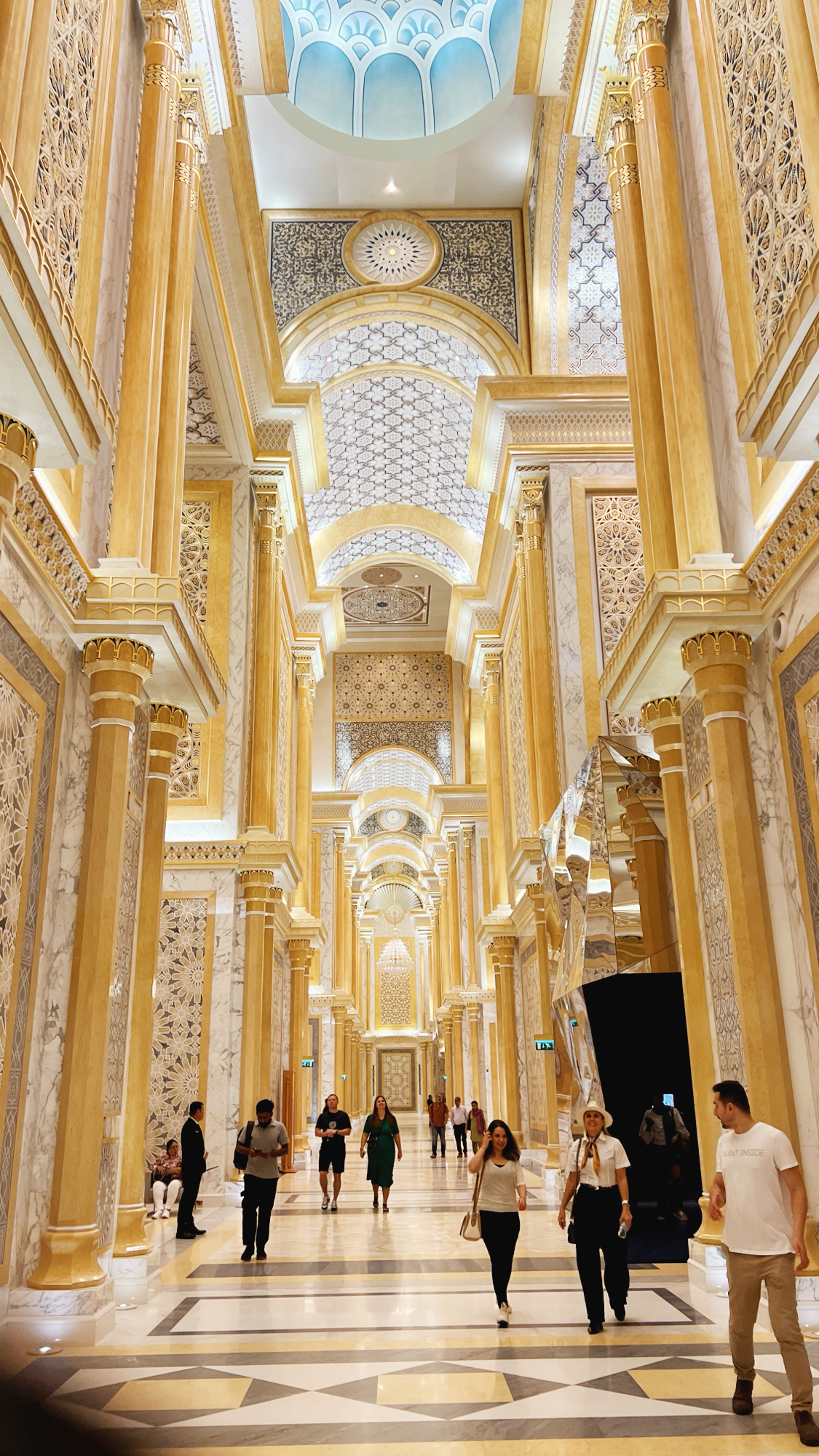 노을 지는 시간에 아랍에미레이트의 대통령인 카사르 알 와탄의 궁을 투어 했다. 영국 프리미어리그의 맨체스터시티 구단주 만수르가 왕의 동생이자 부통령이라고 한다. 지금껏 가본 나라의 건물 중에 가장 화려한 실내를 가진 건물이었다.