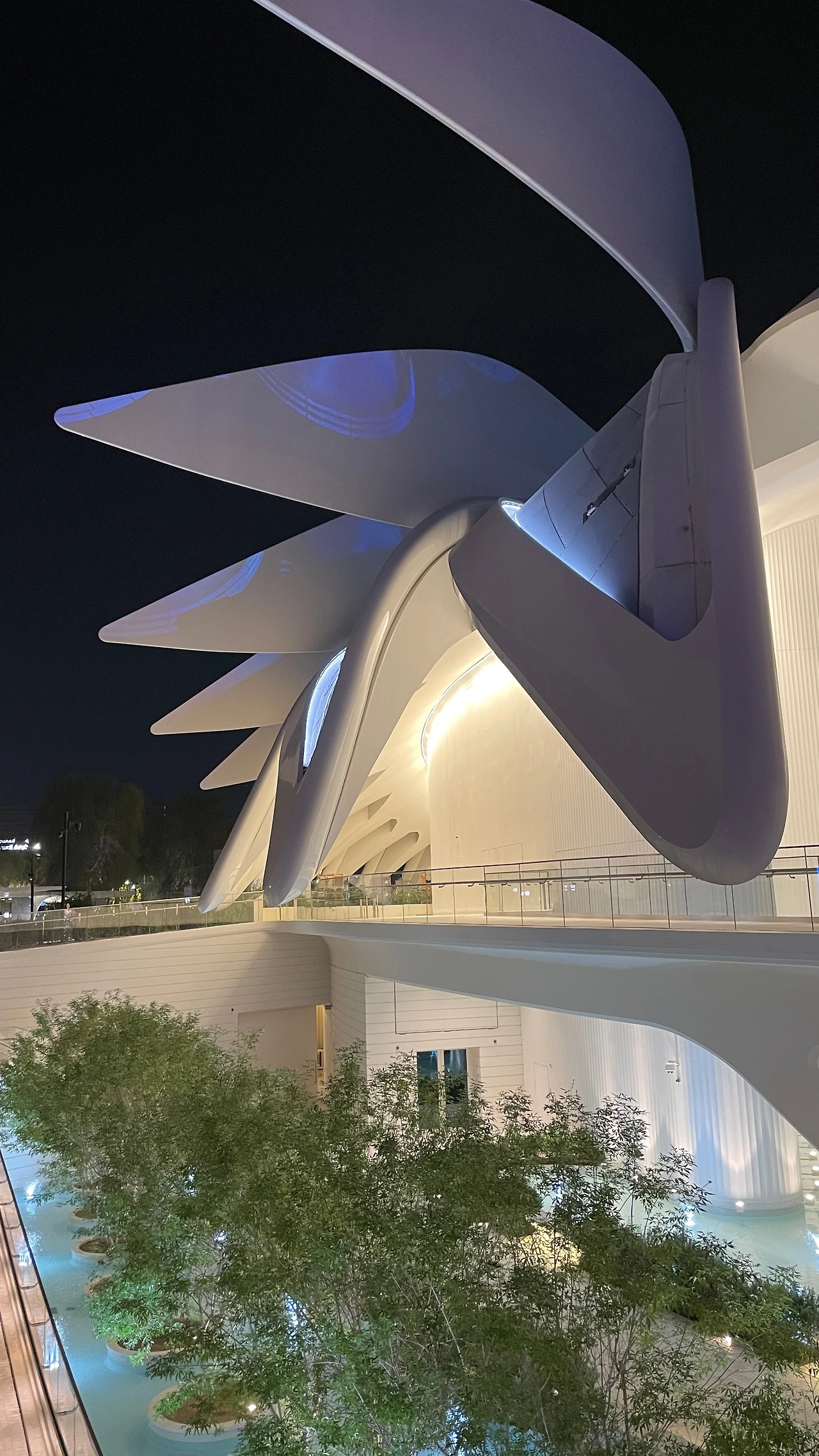 세계 여행 중 형태가 유독 눈에 많이 띄었던 건물들이 있었는데 스페인 출신 건축가 산티아고 칼라트라바가 설계한 건축물들이었다. 뉴욕과 브라질의 리우 데자네이루, 스페인 곳곳에서 구조미가 특히나 뛰어난 건축물이나 다리를 볼 수 있었는데 그중 하나가 두바이 엑스포 내 UAE관이었다. 처음에는 칼라트라바의 건축물인지 모르고 약간 귀여운 포켓몬 같기도 해서 다가가봤는데 날개가 접힐 거 같이 생겨서 좀 더 찾아보게 되었다. 그래서 날개가 접히는 기능이 있는 칼라트라바가 설계한 건물이라는 것을 알게 되었다.