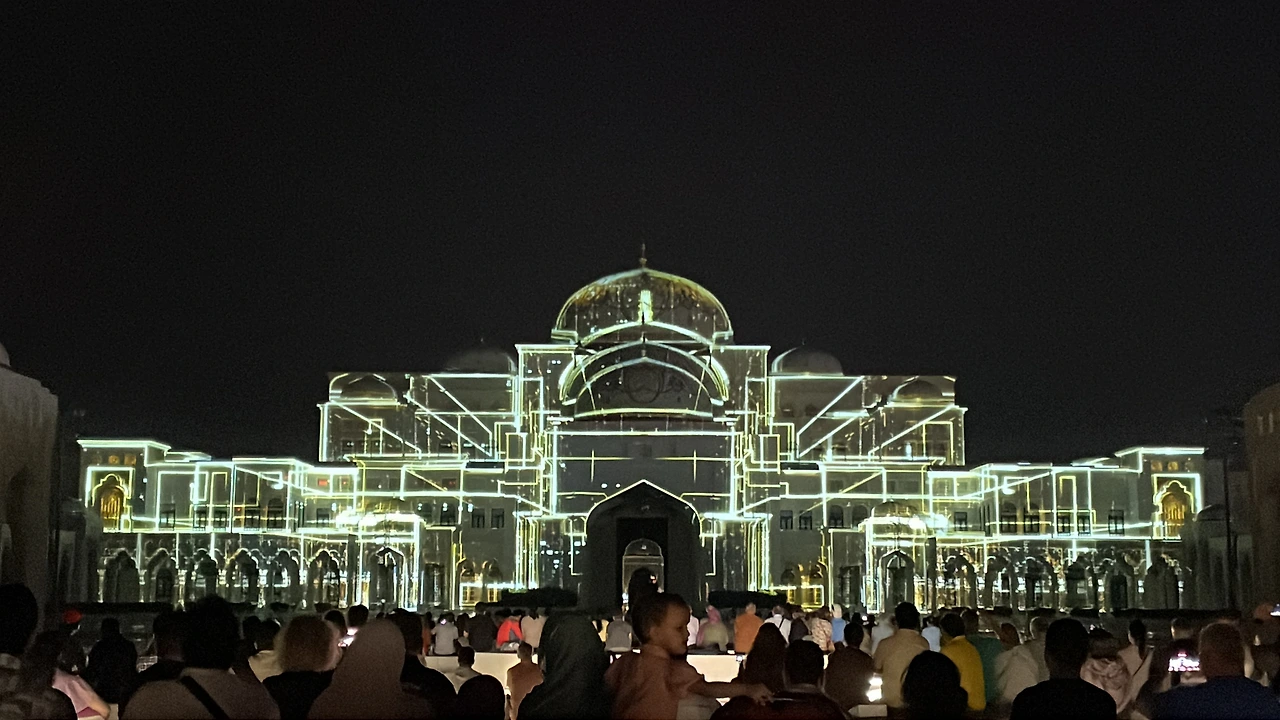 이 궁전투어의 하이라이트는 해가 진 후 시작하는 궁을 배경으로 펼쳐지는 레이저 쇼다. 넓은 야외에 궁을 바라보는 좌석들이 있는데 이곳에 앉아 기다리고 있으니 곧 공연이 시작되었다. 아부다비 일정 중 하루 저녁은 이곳에서 시간을 보내길 추천할 만큼 괜찮은 볼거리였다.