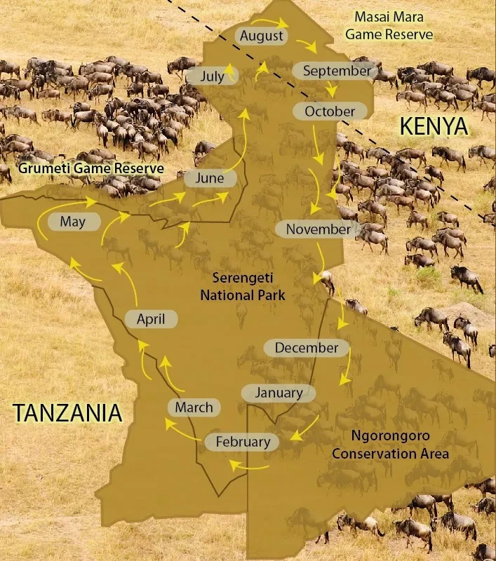 미리 알아본 정보로는 탄자니아의 세렝게티와 케냐의 마사이마라 두 곳을 투어로 돌아볼 수 있는데 2024년 1월 기준으로 비용이 거의 두 배 차이였다. 위 지도를 보면 세렝게티와 마사이마라의 위치와 규모를 볼 수 있다. 퀴즈탐험 신비의 세계에서 봤던 와일드비스트의 대이동 시기도 알 수 있는데 초식동물들을 따라서 육식동물들도 따라서 이동하기 때문에 그때 그곳이 게임드라이브의 성수기라고 한다. 우리는 다음 목적지인 탄자니아에서의 세렝게티 사파리투어는 아쉽지만 다음 기회로 미루고 저렴한 마사이마라를 가기로 정했다.