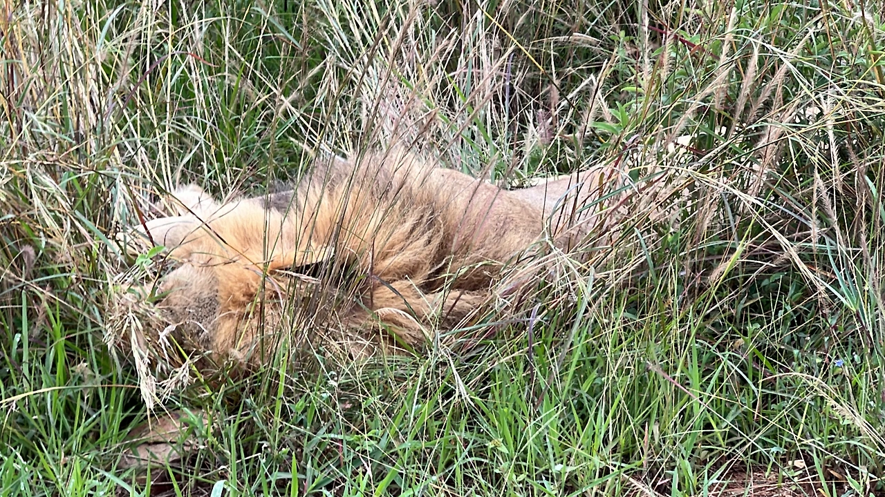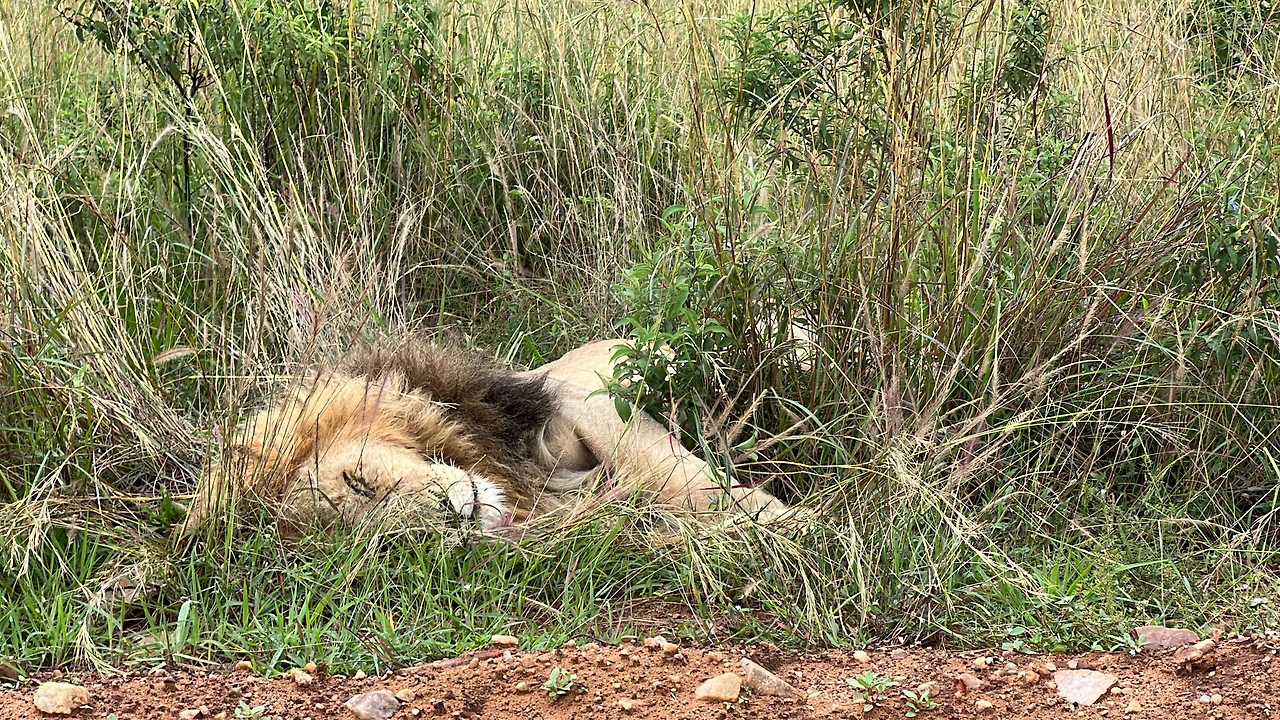 여기저기 돌아다니던 길에 풀 숲 사이에 뭔가 있어서 자세히 봤더니 수사자였다. 몇 번을 왔다 갔다가 하면서 봤는데 요지부동이다. 죽은 줄 알았는데 자세가 달라진걸 보니 살아있어서 다행이다.