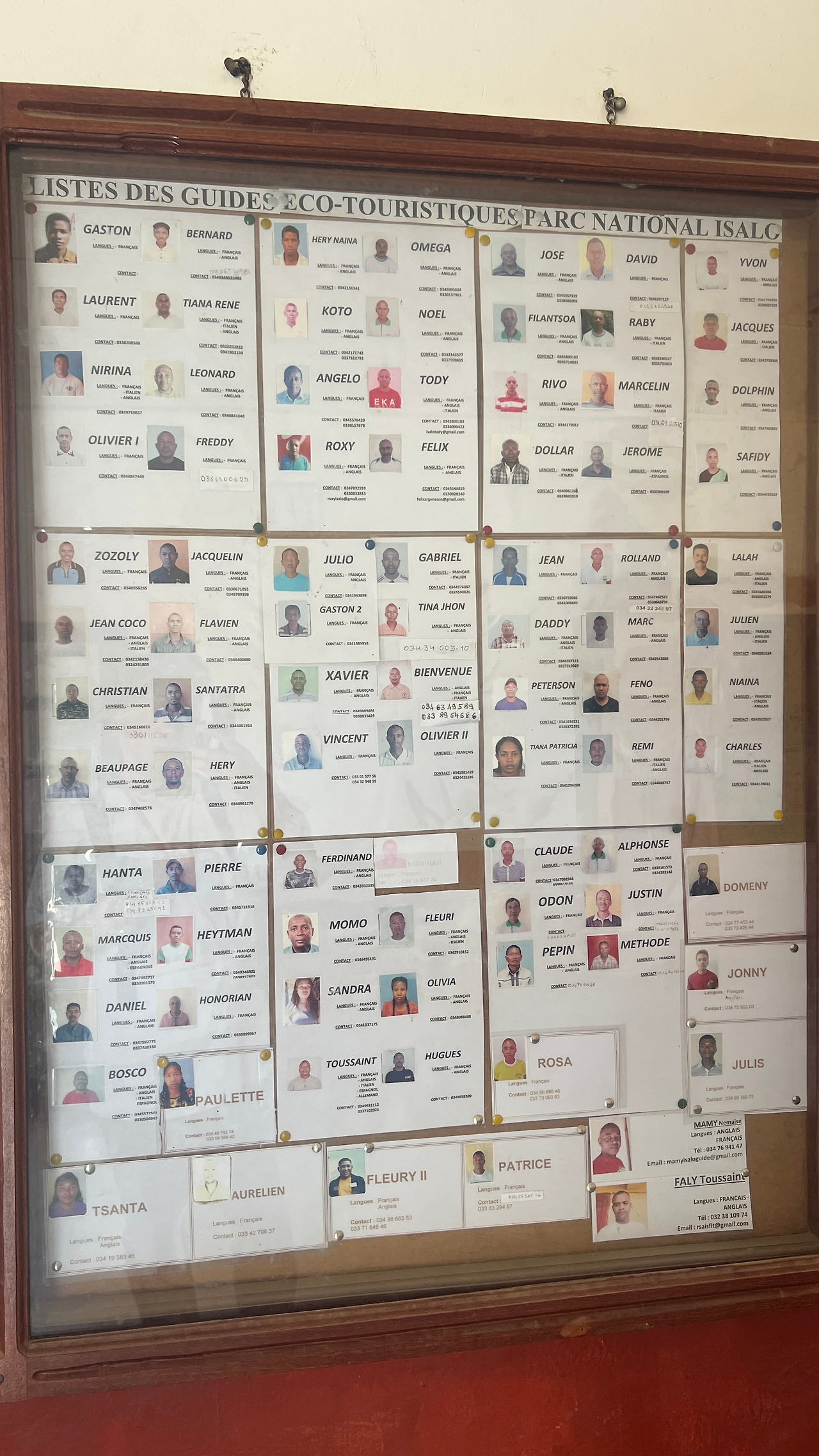 이살루 국립공원도 등록된 공식가이드를 대동하고 투어를 한다. 아래 오른쪽 사진처럼 많은 가이드들이 등록되어 있는데 국립공원에 진입하기 전에 마을에 위치한 오피스에서 결제하고 나서 십 분 정도 차를 타고 국립공원으로 이동한 후 가이드와 함께 입장한다.