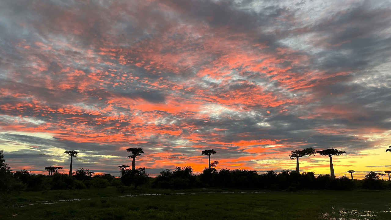 수명이 수천 년이라는 바오밥나무는 그 크기가 생각했던 것보다 훨씬 거대했다. 아무도 없는 바오밥 애비뉴에서 돗자리를 펴놓고 누워 시시각각 붉게 물드는 하늘을 배경으로 바오밥 나무를 시간 가는 줄 모르고 바라보았다. 우리는 해가 질 무렵에 바오밥 거리를 갔고 다음 날 이른 아침에 일출을 보기 위해 한번 더 방문했다.