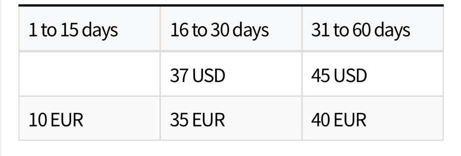 체류기간에 따라 세 가지 구간을 나눠서 비자를 구입할 수 있었다. 우리는 15일짜리 비자를 구입해서 14박 15일 동안 마다가스카르를 여행했다.