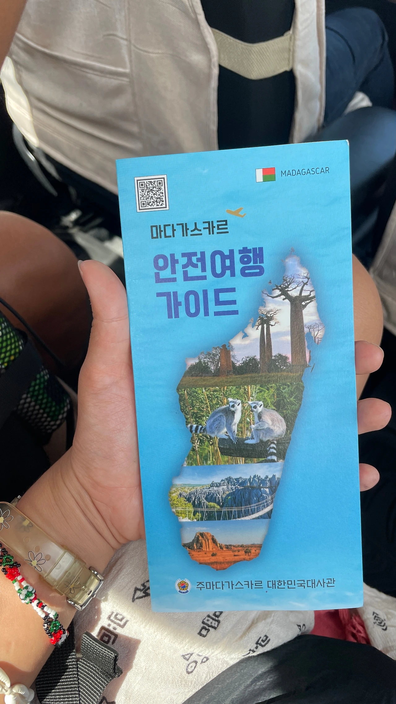 2024년 2월 10일에 입국했는데 태어난 김에 세계일주 마다가스카르편의 방영이 막 끝난 시점이어서 방송을 통해 미리 현지의 분위기를 느낄 수 있었다. 입국심사를 마치고 심사대를 빠져나오면서 놀랐던 점이 우리나라 대사관이 있어서 그런지 한국어로 된 안전여행가이드 팜플렛이 있었다는 것이다. 수도인 안타나나리보에는 한식당도 몇 군데 있어서 많이 이용했다.