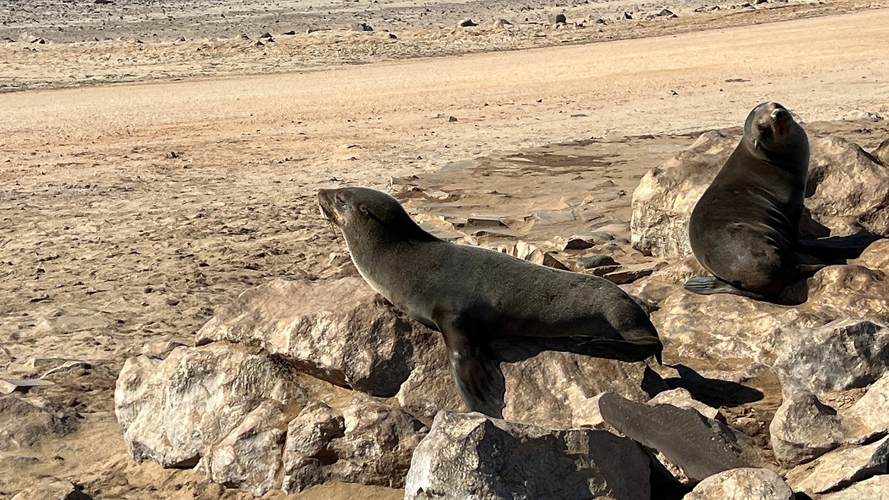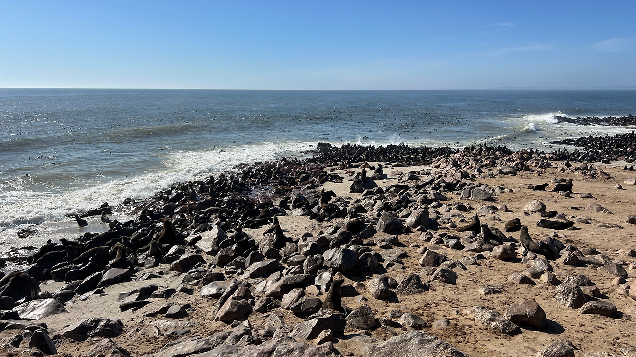 스와코프문트에서 약 150km 북쪽에는 Cape Cross라는 곳이 있다. 남부아프리카의 서해안에는 약 200만 마리의 물개가 살고 있는데 그중에서도 이곳 케이프크로스에 수많은 물개가 살고 있다고 한다. 입장마감시간이 정해져 있었는데 아슬아슬하게 입구에 도착해 물개를 보러 약 오분정도 더 이동했다.