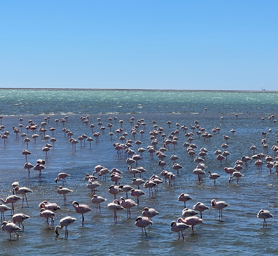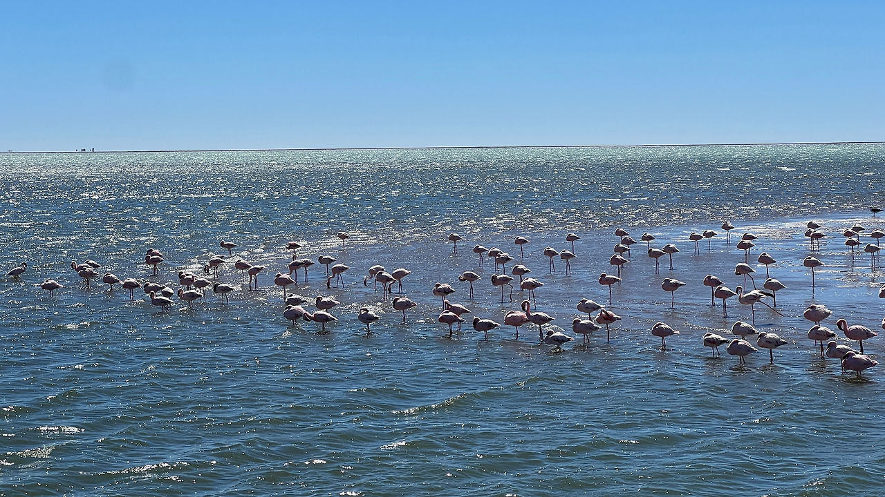 미리 예약한 캠핑장에 가기 전에 스와코프문트에서 조금 떨어진 왈비스베이라는 곳에 갔다. 왈비스베이에는 많은 플라밍고를 관찰할 수 있는 라군이 있다. 동물원에서나 봤던 분홍색 다리의 플라밍고를 이렇게 나미비아의 바다에서 보게 될 줄은 몰랐다.
