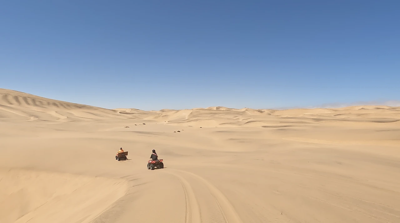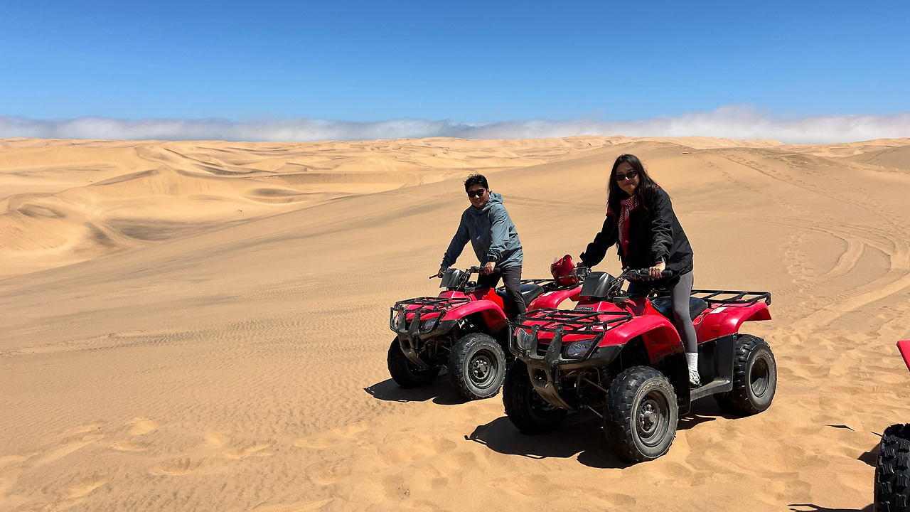 모든 것이 완벽했던 캠핑장에서 체크아웃을 하고 스와코프문트에서 가장 기대했던 쿼드바이크 투어를 하러 갔다. 미리 예약도 안 하고 업체에 찾아갔는데 바로 탈 수 있었다. 가이드 한 명과 함께 두 시간 동안 바다에 맞닿아 있는 사막을 달리고 샌드보딩을 즐기는 투어다.
