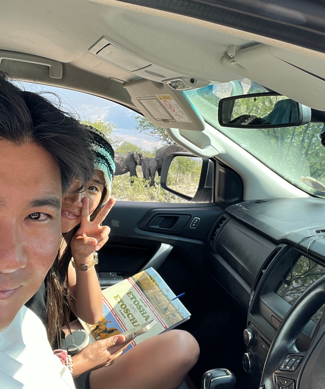 셀프게임드라이브의 필수품 동물백과(?)를 들고 탐험을 시작했다. 에토샤 국립공원에는 곳곳에 워터홀이 있어서 물 마시러 오는 동물들을 자주 목격할 수 있다.