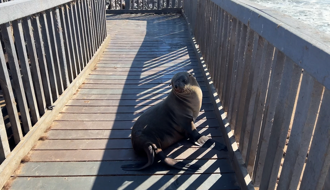 주차장에 도착해서 내리자마자 엄청난 악취가 코끝을 찔렀다. 와… 태어나 처음 맡아보는 아찔한 냄새다. 셀 수 없을 정도로 많은 수의 물개가 있었다. 바다에서 꽤나 떨어진 주차장까지 와서 일광욕을 즐기고 있는 녀석들도 많았다. 바다 쪽으로 좀 더 다가가니 산책로가 마련되어 있었다. 좀 더 가까이에서 그들을 관찰할 수 있도록 데크를 만들어 놨는데 부서진 난간 사이로 들어온 물개들로 인해 이미 점령당해 있었다.