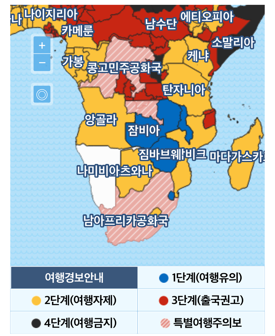 반면 우리의 목적지 나미비아는 아프리카 본토에서 유일한 여행안전지역이다. 아프리카에서 우리 부부가 가장 좋아했던 나라이고 꼭 다시 한번 가보고 싶은 나라이기도하다.