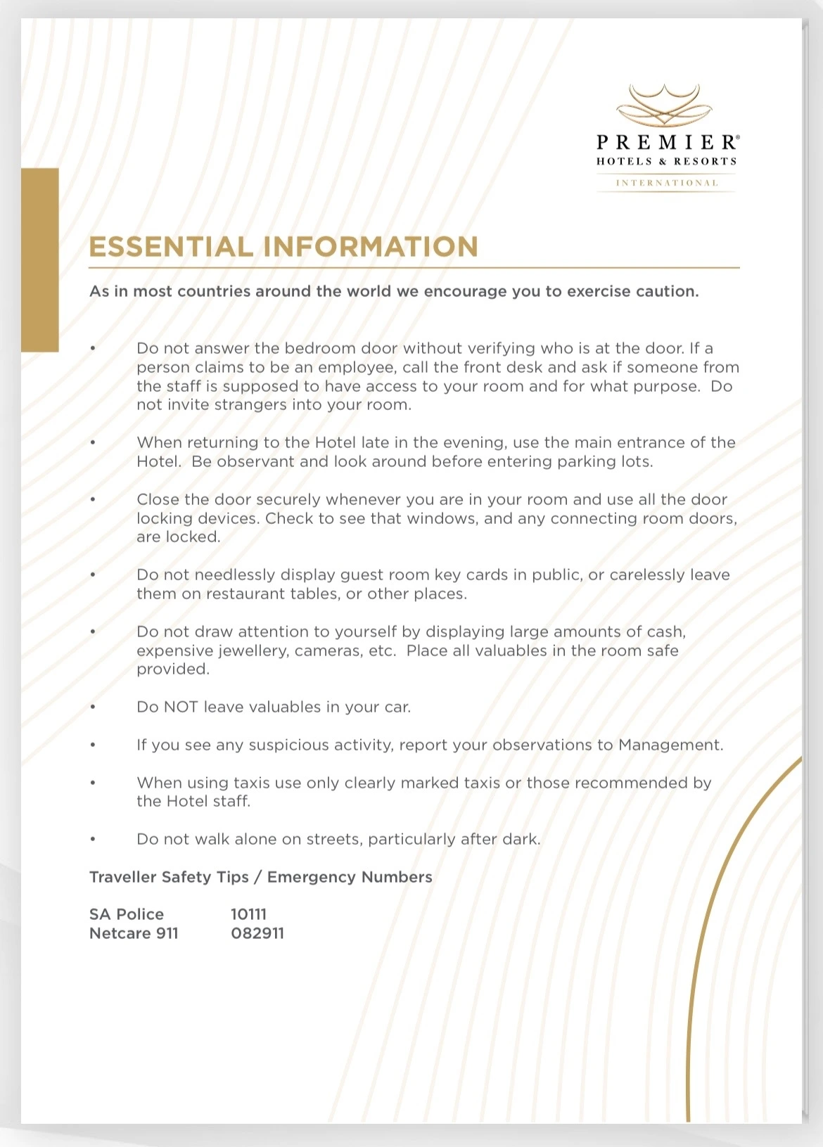 일부러 가깝고 좋은 호텔을 예약해서 갔는데 호텔 룸에 도착했을 때 숙박객에게 끊임없이 강조하는 중요정보는 우리를 더 두렵게 하기에 충분했다. Important information에는 다음과 같이 쓰여있었다. ”누구에게도 절대 문을 열어주지 말라 “