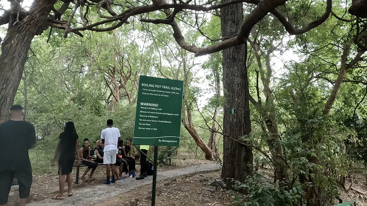 짐바브웨에 비하면 규모도 작고 뷰포인트도 적지만 폭포가 떨어지는 잠베지강까지 직접 내려갈 수 있었다. 온천처럼 따뜻한 물이 나오는 줄 알고 기대하고 내려갔는데 물이 따뜻한지는 느끼지 못했다. 앞서 말한 번지점프는 사진 속의 철교 위 약 110미터에서 떨어진다.