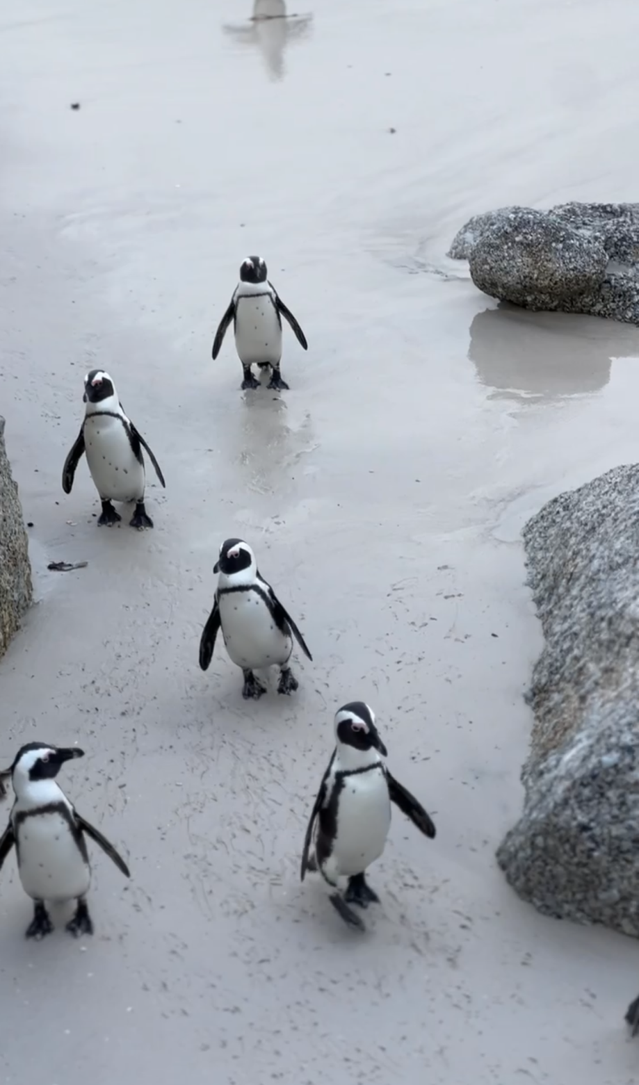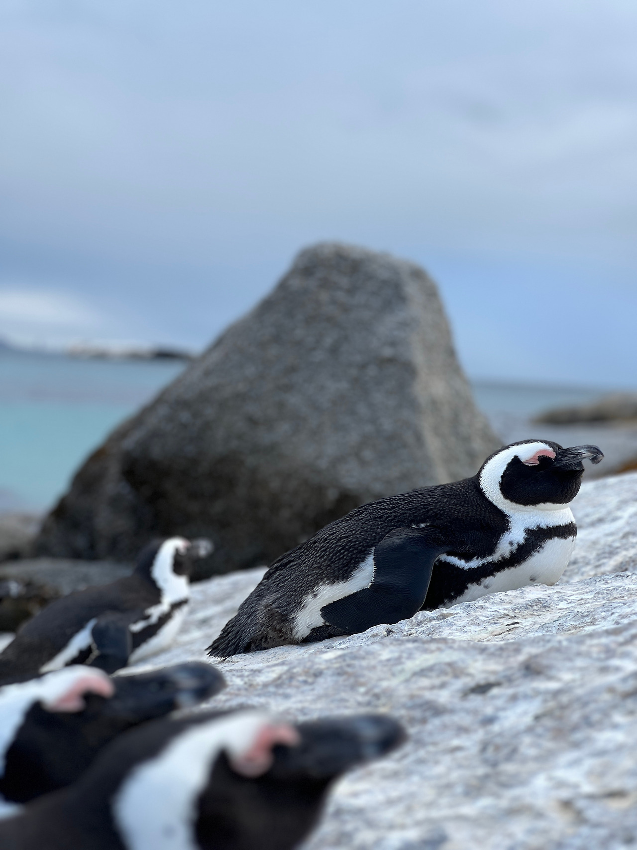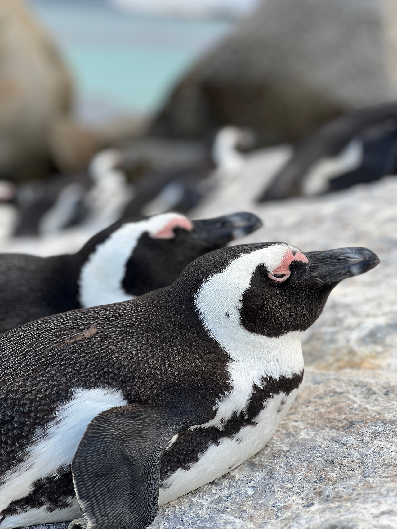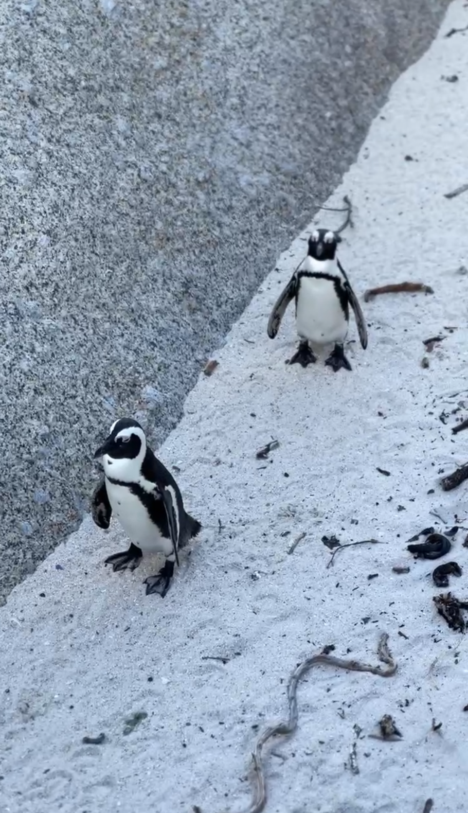 산책로를 걷고 있는데 바로 길옆에 자카스펭귄들이 나타났다. 당나귀와 비슷한 울음소리를 낸다고 해서 자카스펭귄 (Jackass Penguin)이라 불린다고 한다. 핑크색 눈썹이 인상적인 자카스펭귄은 생각했던것보다 작았다. 남극 다큐에서 많이 봐왔던 120cm까지도 자라는 황제펭귄들의 절반도 안되는 크기인 3~40cm라고 한다.