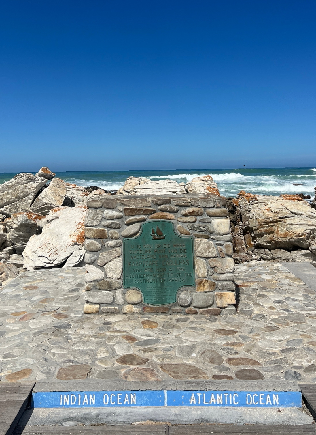희망봉이 아프리카대륙의 최남단으로 생각했는데 아니었다. 아프리카 대륙의 최남단이자 인도양과 대서양을 구분하는 지점이 바로 이 아굴라스곶이다. 바다에는 육지처럼 보더가 있거나 울타리가 없기때문에 바다의 구분이 되는 기준을 직접 볼수 있어서 신기했다. 이 표지석만 있고 관광할만한게 딱히 없어서 잠깐 머물고 희망봉으로 향했다.