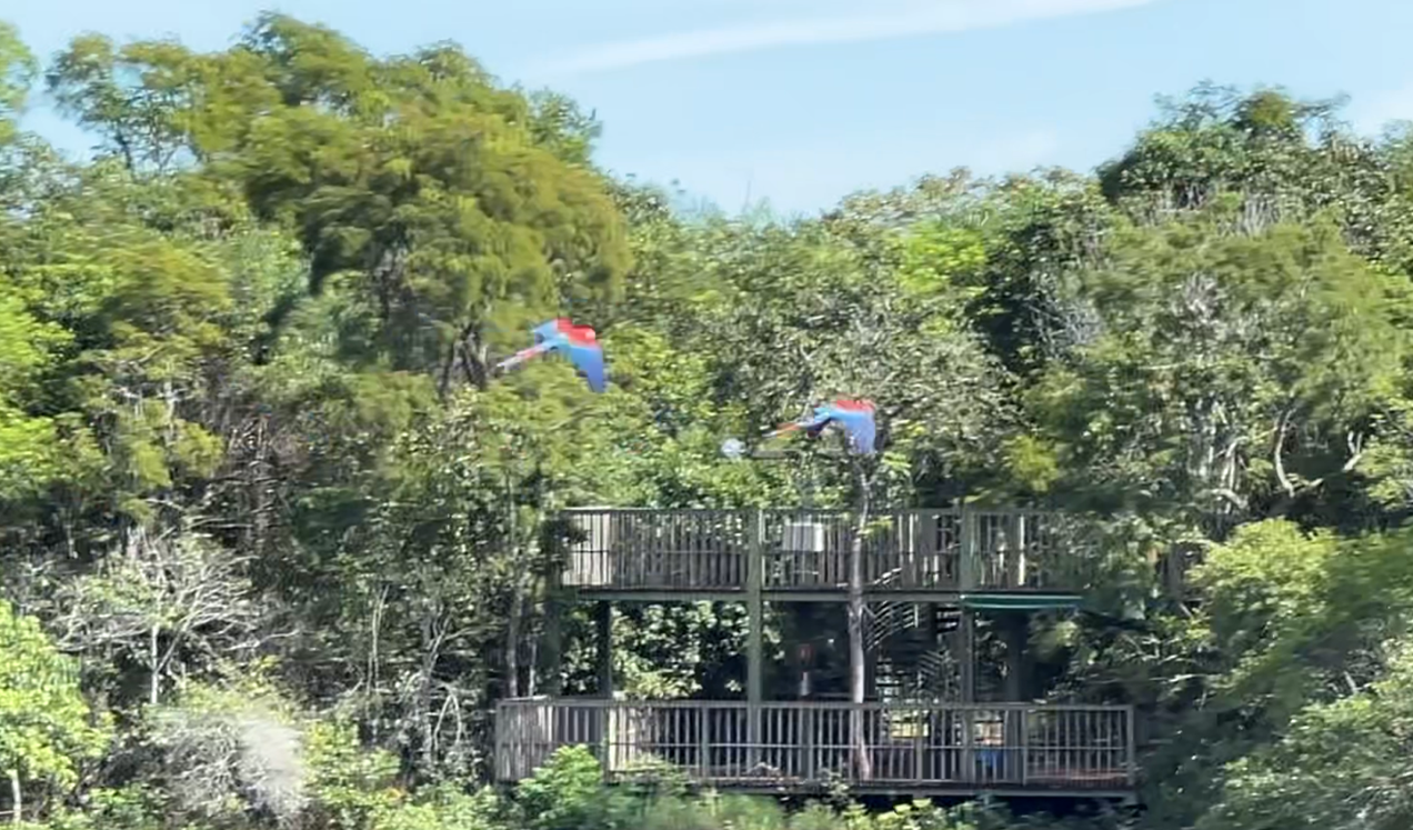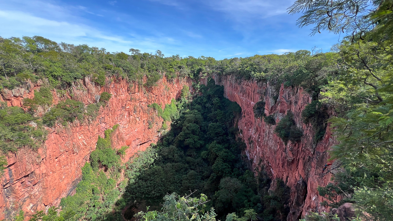 정글을 지나며 신기한 동식물들에 대해서 가이드의 설명을 들었다. 깊이 약 105미터에 폭이 약 300미터 다다르는 싱크홀에 접근하자 엄청 큰 앵무새들이 짝지어서 날아다닌다. 당시에는 몰랐는데 일평생 부부가 한쌍으로 다니는 홍금강앵무라는 종이 었다.