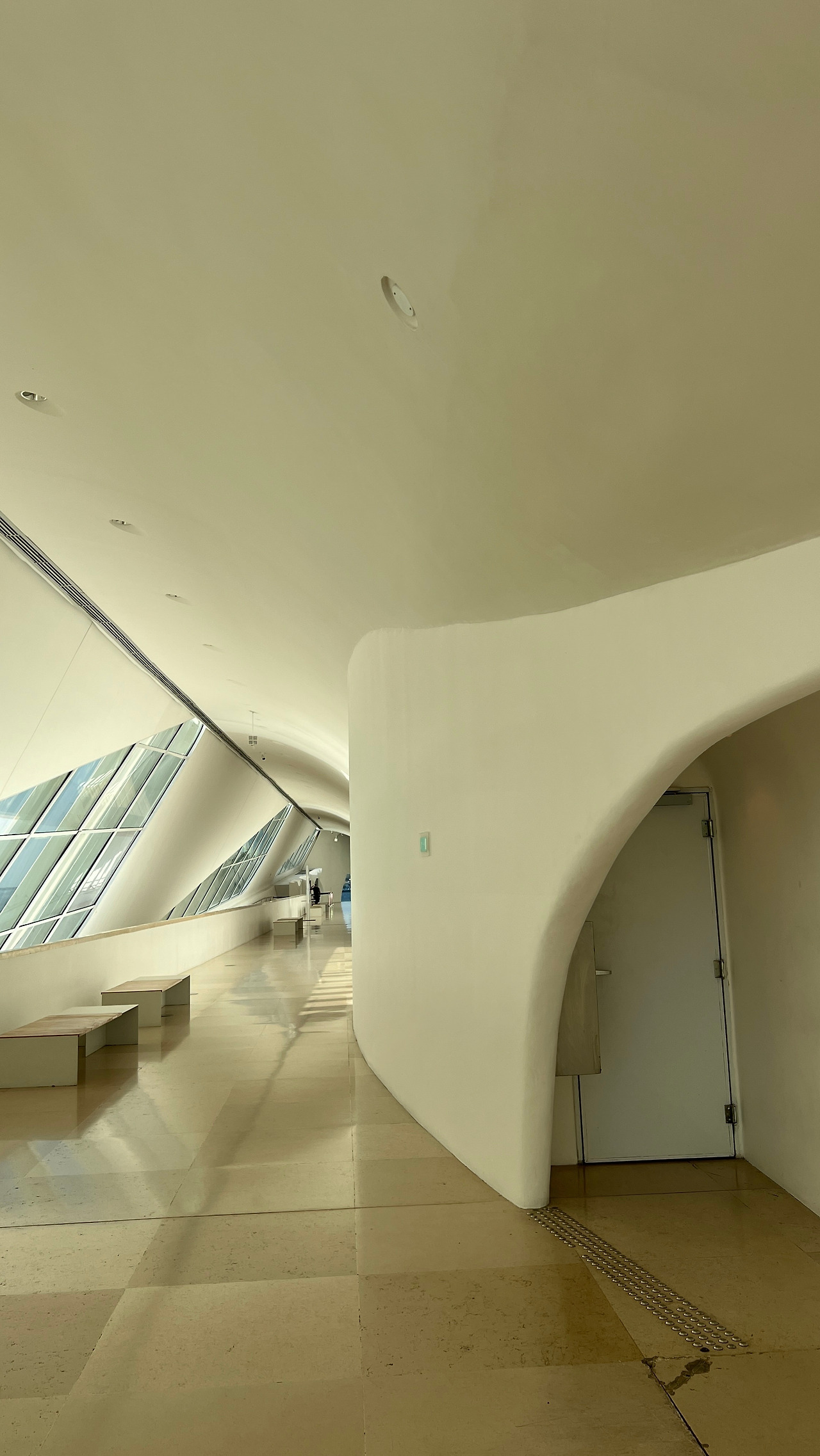 1인당 약 7,000원의 입장료를 내고 실내로 들어오면 온통 하얀색이라 공간이 더 높고 넓어 보인다. 사선벽과 곡선으로 이루어진 공간은 영화에서 보던 우주선에 들어와 있는 듯하다.