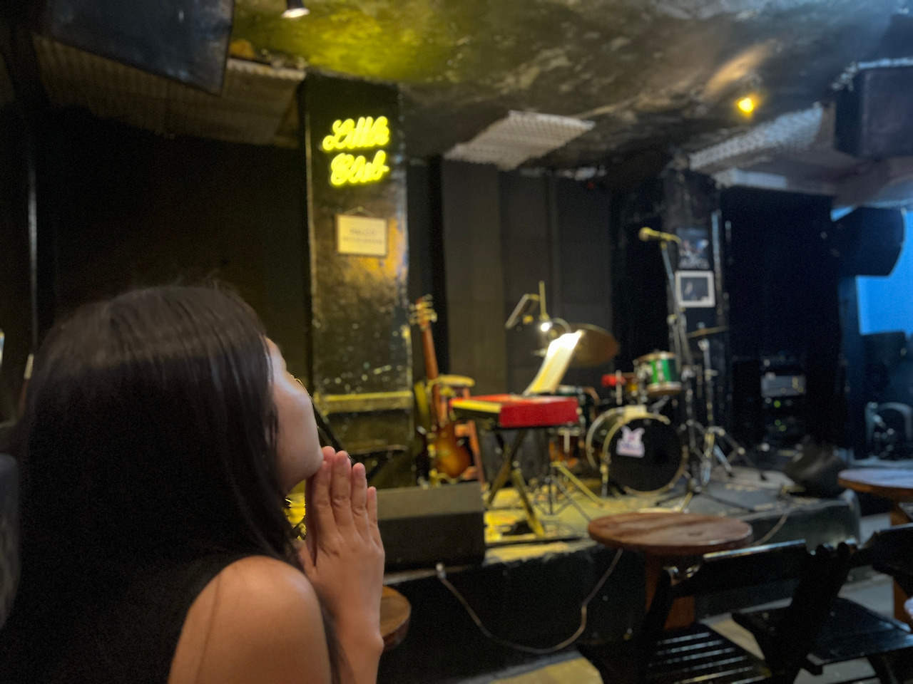 밤 9시쯤 도착했는데 아직 뮤지션들이 도착하지 않았다. 음악을 본업으로 하는 사람들이 아니라 각자 하루 일과를 마치고 저녁까지 먹고 하나 둘 모이는 느낌이었다. 좌석은 뮤지션들을 위한 자리고 관객들은 옆에 서서 보거나 펍 밖에 서서 기다린다.