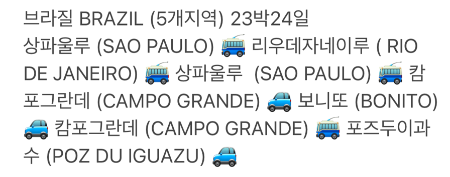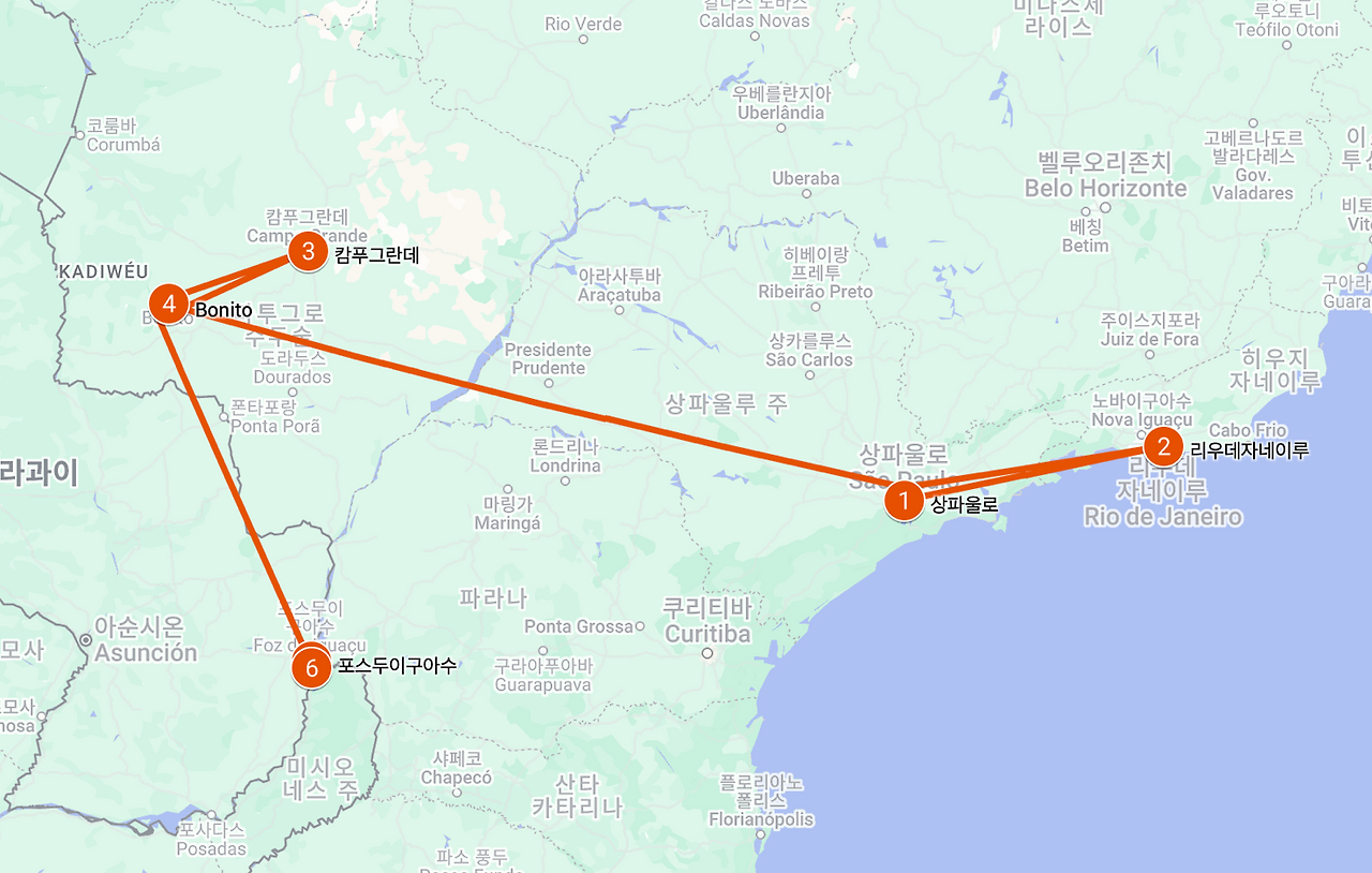 브라질의 면적은 우리나라의 85배이고 세계에서 5번째로 큰 나라이다. 조금씩 근처 도시를 옮겨 다니는 것이 불가능했다. 우리는 일단 상파울루로 IN 했고 포즈 두 이과수에서 OUT 하는 계획을 세웠다.