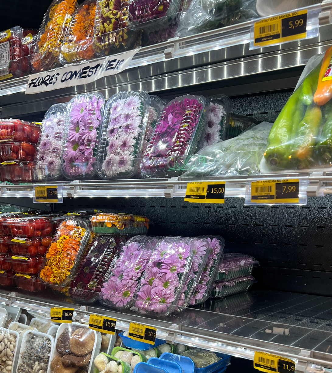 우리는 세계여행을 하면서 대부분 숙소에서 밥을 직접 해 먹었기 때문에 우리가 방문한 모든 나라의 마트를 경험했다. 브라질의 마트에서는 독특하게 많은 종류의 식용꽃을 팔고 있었다. 먹어 보지는 않았지만 플레이팅할때 미관상 올려두는 정도가 아니라 이 정도 크기면 안성재셰프도 납득할만한 맛도 날 것 같았다. 냉동실에는 아마존산 물고기들이 있었다. 처음 보는 거대한 물고기들이 신기했다.
