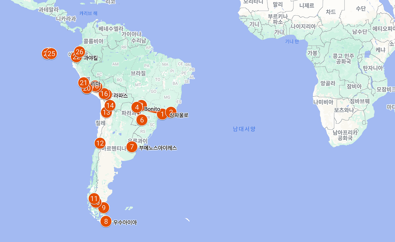 지리상 가장 가까운 곳이 브라질이었다. 여러 정보들을 찾아봤을 때 보통 페루-볼리비아-칠레-아르헨티나-브라질 (페볼칠아브) 순서로 여행하는 동선을 많이 간다고 하는데 우리는 브라질부터 시작해서 반시계 방향으로 돌아보기로 했다.