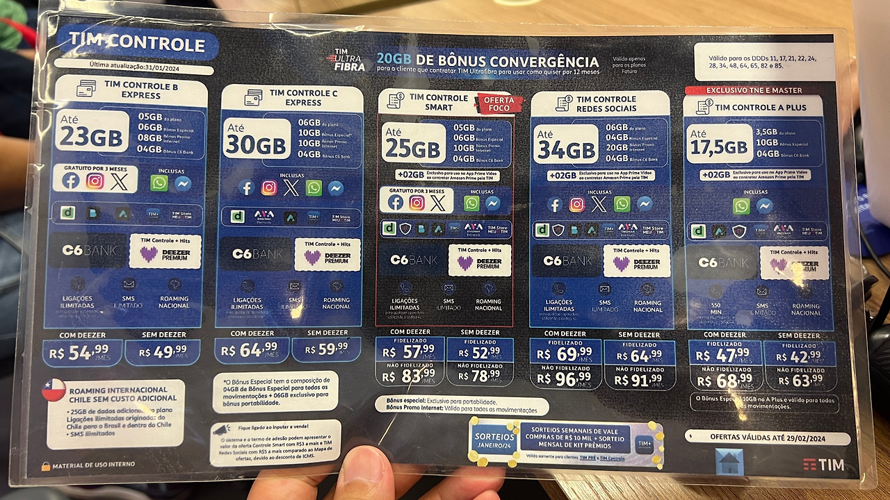 딱 봐도 위 사진 중 빨간색 상품이 더 비싸보였는데 그 직원은 CPF번호가 없으니 이것만 구매할 수 있다고 했다. 몇 번이나 확인하며 불안해하는 우리에게 걱정 말라고 했다. 한국을 떠나온 지 10개월이 지났는데 단 한 번도 심카드와 통신사가 문제가 됐던 적은 없었다.