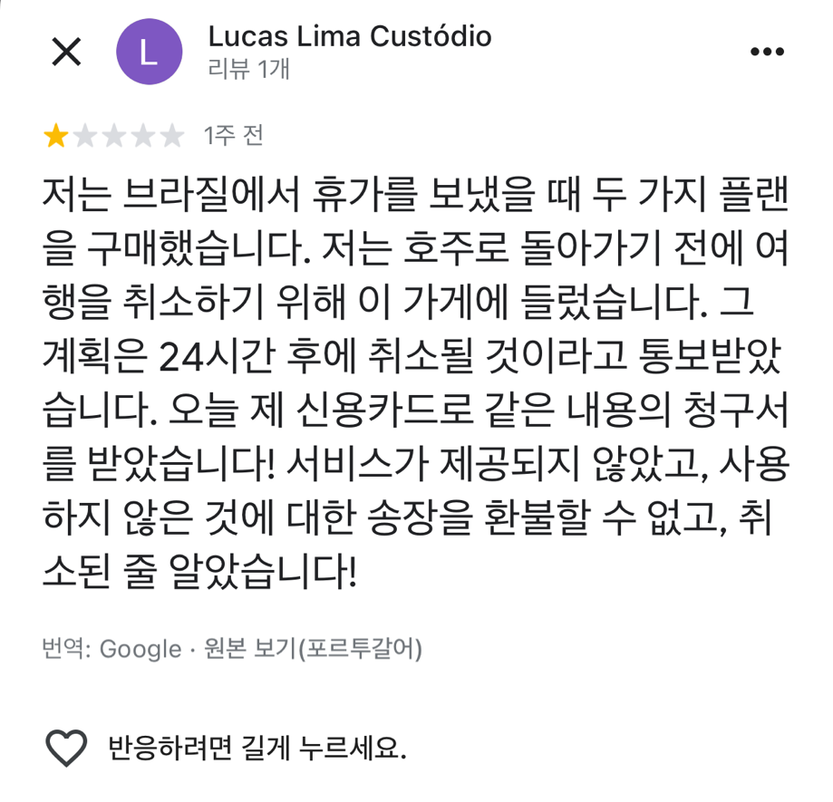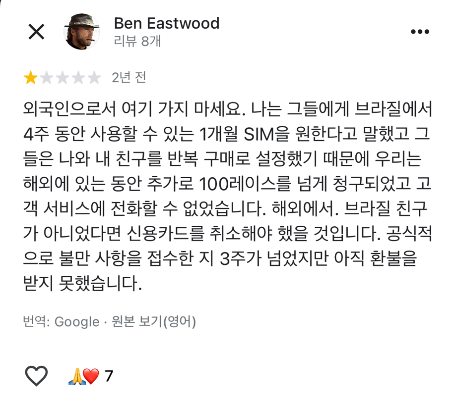 해당 매장의 담당자를 찾기 위해 구글지도를 보다가 나와 비슷한 경험을 한 사람들의 리뷰를 확인할 수 있었다. 상습범이었다. 통신사 공식매장에서 사기 친다는 생각을 단 한 번도 해본 적이 없었기에 투어상품이나 음식점처럼 리뷰확인할 생각을 못했다.