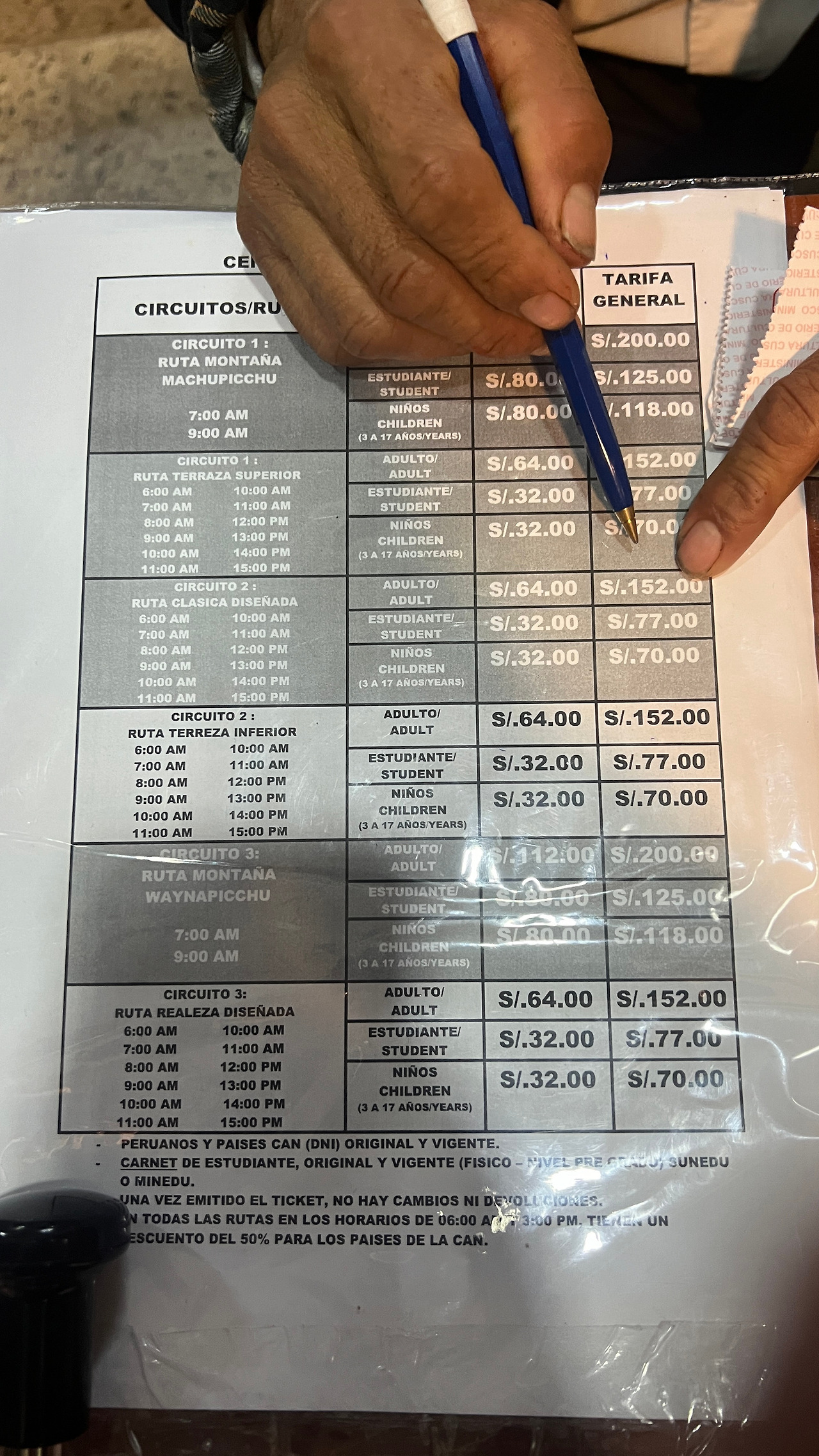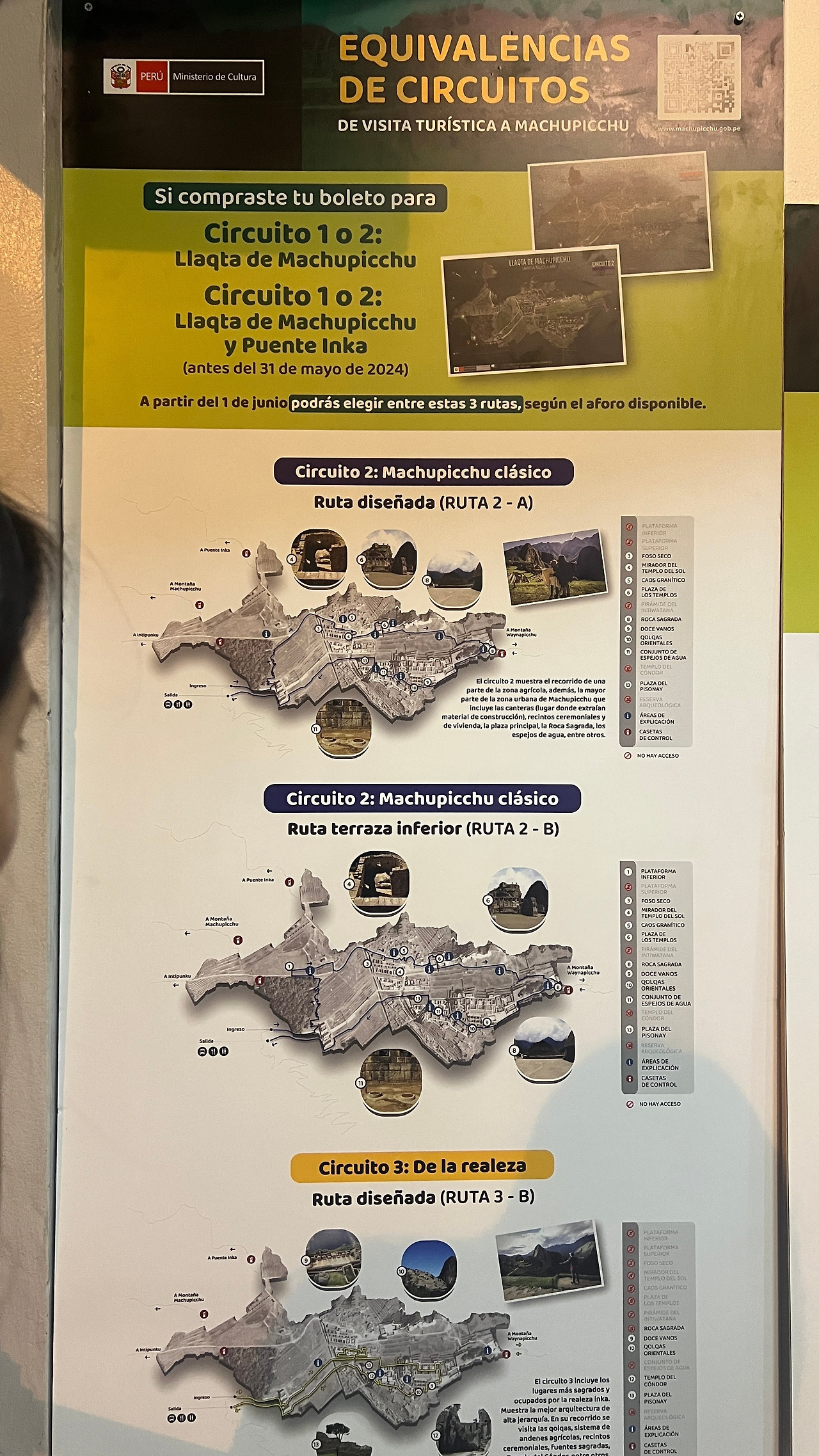 2024년 6월 1일에 아구아스 칼리엔테스에 도착했는데 이 날부터 마추픽추 서킷 시스템이 크게 개편되었다. 마추픽추를 둘러볼 수 있는 코스를 서킷이라 부르는데 기존 5개였던 서킷이 3개로 줄고 좀 더 다양한 하위 경로가 10가지나 생긴 것이다. 너무 복잡하고 새로 생긴 서킷을 가본 사람 후기가 전무해서 기존에 우리가 가려던 서킷과 비슷하다는 Circuito 2 - Ruta Clásico Diseñada을 예매하기로 했다.