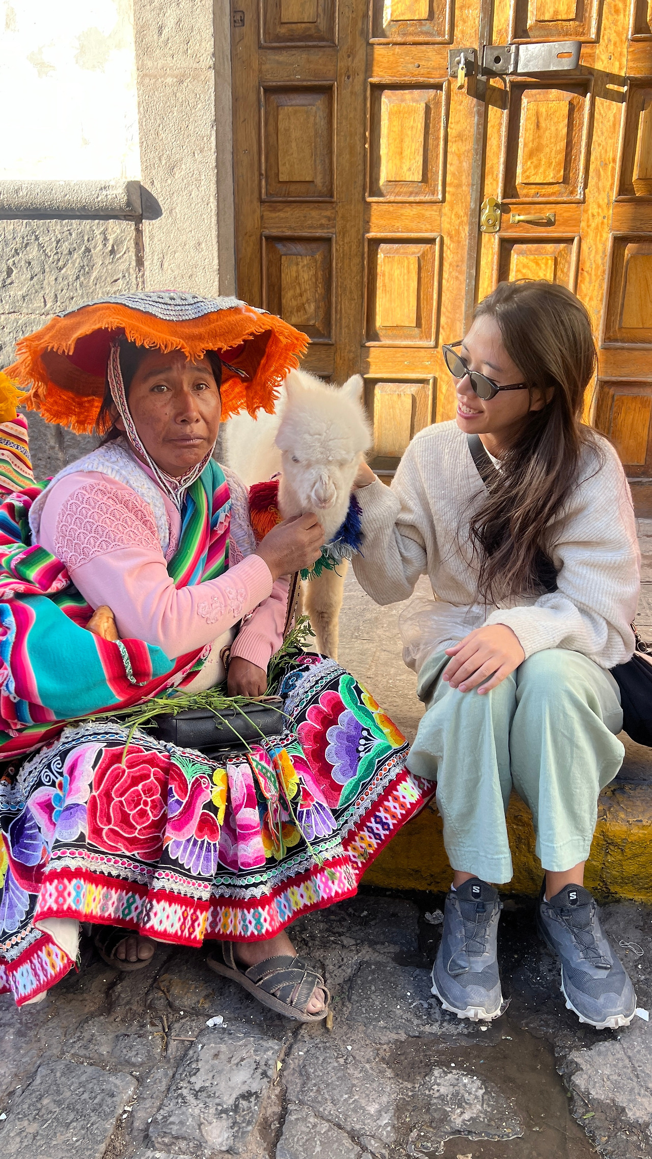 쿠스코 시내를 돌아다니다 보면 전통복장을 입고 새끼 알파카를 데리고 다니는 현지여성들을 볼 수 있는데 관광객들을 상대로 팁을 받고 알파카와 사진을 찍도록 해주고 있었다. 페루를 여행하다 보면 알파카를 자주 목격할 수 있는데 너무 예쁘고 순하게 생긴 새끼알파카와 형형색색의 전통복장을 입은 현지인과의 사진은 그냥 지나치지 못할 만큼 매력적이었다.