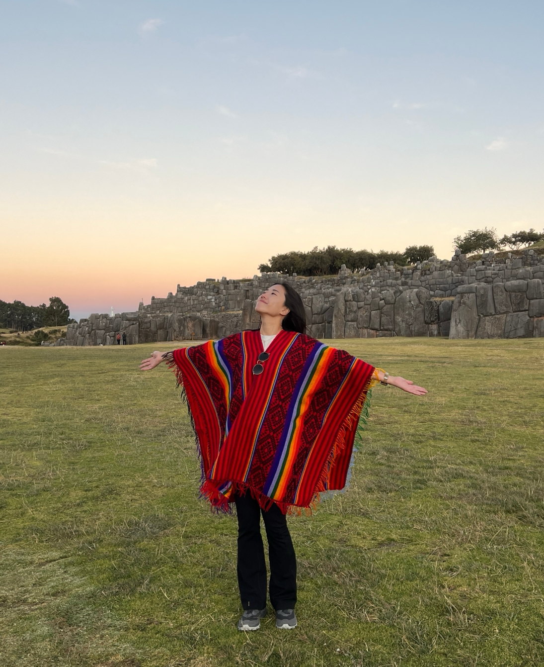 이 사진을 찍기 위해 헤어밴드부터 판초까지 풀 세팅을 하고 올라갔다. 볼리비아에서 구매하려 했는데 판초는 페루가 젤 저렴하고 디자인도 다양하다는 말에 볼리비아 우유니에서 헤어밴드만 사고 참다가 결국 쿠스코에 도착해서 판초를 샀다.