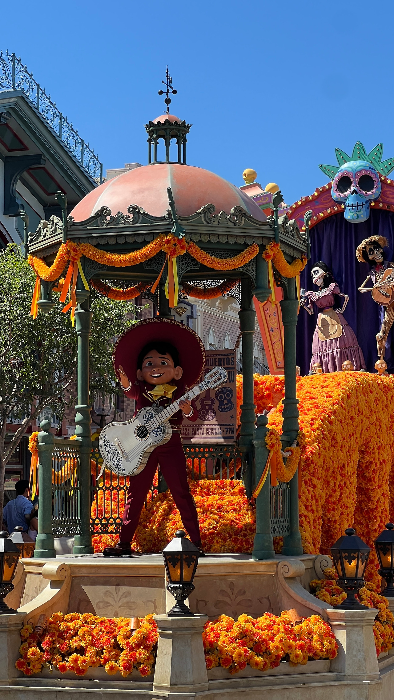 놀이공원의 꽃인 퍼레이드가 시작됐다. 디즈니의 유명한 캐릭터들을 바로 눈앞에서 볼 수 있는데 여유 있게 보려면 그늘을 찾아서 보는 걸 추천한다. 왜 반대편에만 사람들이 많은지 의아했는데 태양이 너무 뜨거워서 그늘에 자리를 잡은 거였다.